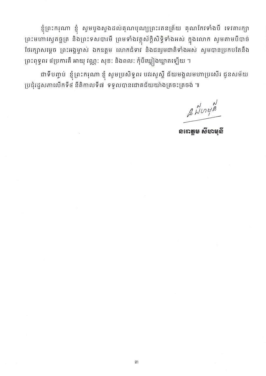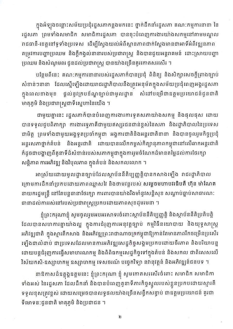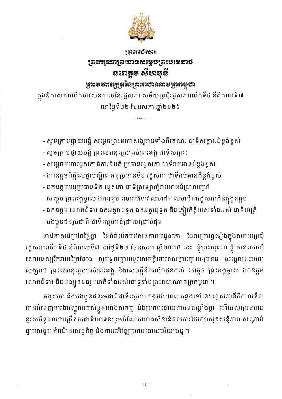 ព្រះរាជសារ របស់ ព្រះករុណា ព្រះបាទសម្តេចព្រះបរមនាថ នរោត្តម សីហមុនី ក្នុងឱកាសការបើកបវេសនកាលនៃរដ្ឋសភា សម័យប្រជុំរដ្ឋសភា លើកទី៤ នីតិកាលទី៧ នៅថ្ងៃទី២២ ខែឧសភា ឆ្នាំ២០២៥