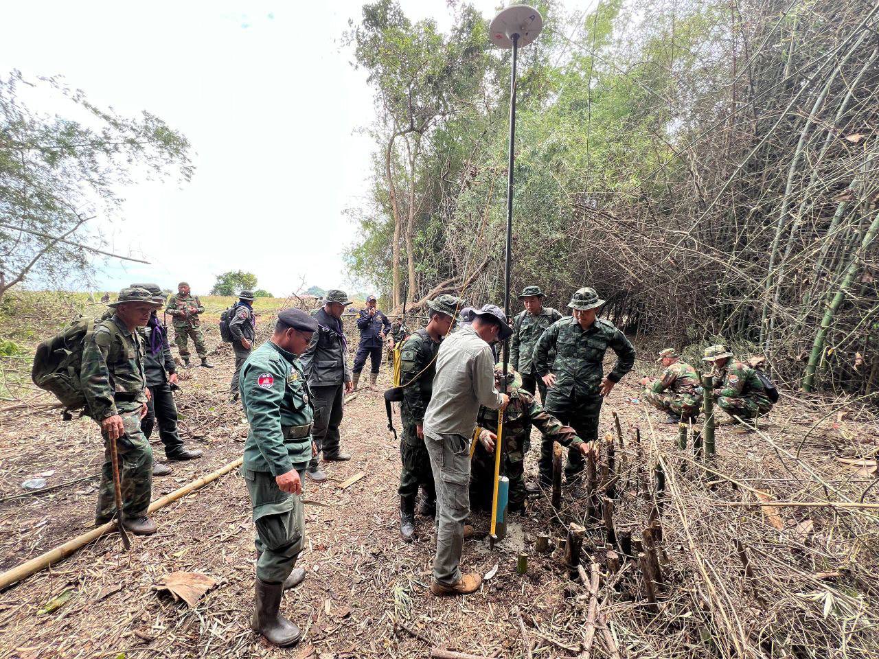 AKP-Phnom Penh, November 24, 2025 —The Joint Survey Team of Cambodia and Thailand has installed 158 out of 166 temporary border markers between Posts No. 52 and No. 59, achieving approximately 95 percent completion.
