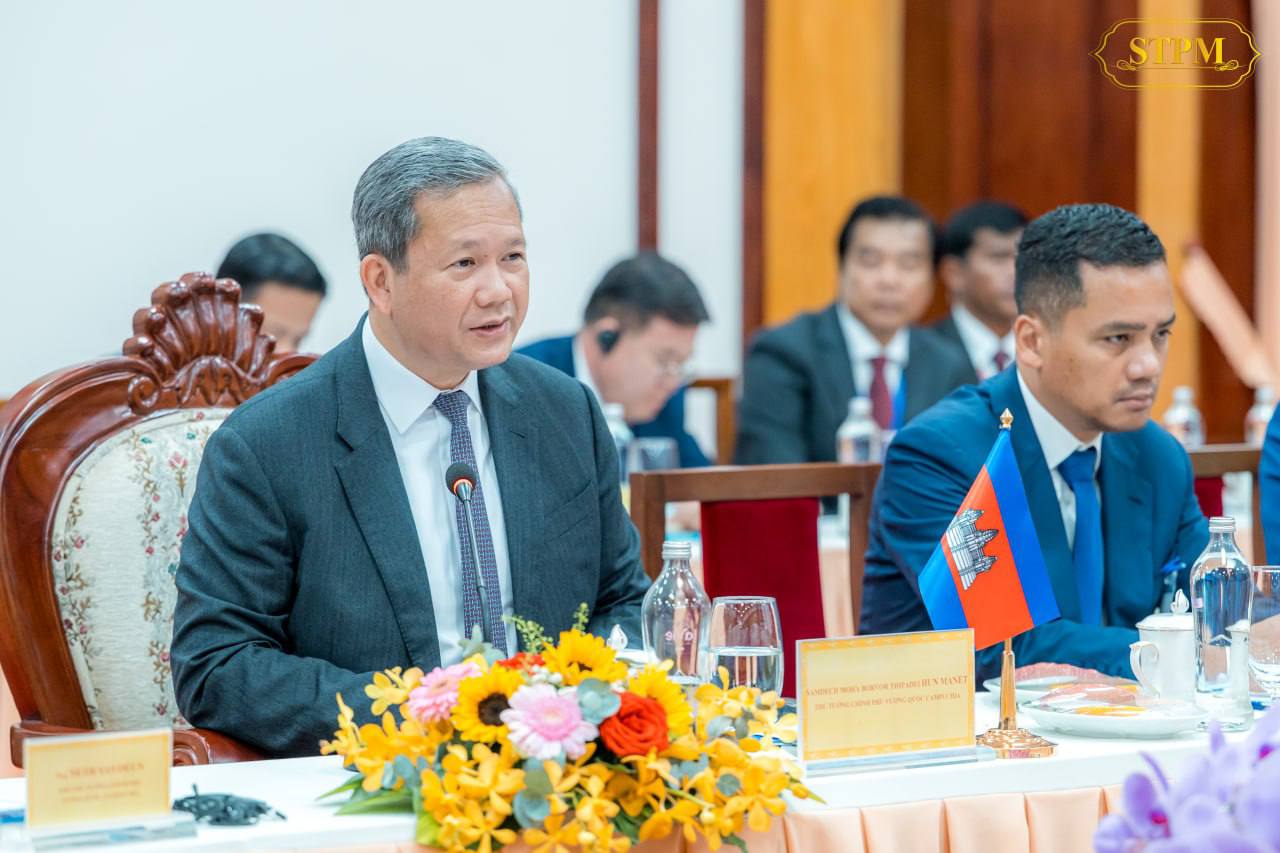 នាព្រឹកថ្ងៃទី៨ ខែធ្នូ ឆ្នាំ២០២៥, សម្តេចមហាបវរធិបតី ហ៊ុន ម៉ាណែត នាយករដ្ឋមន្ត្រី នៃព្រះរាជាណាចក្រកម្ពុជា និងឯកឧត្តម ផាម មិញជិញ (PHAM Minh Chinh) នាយករដ្ឋមន្រ្តី នៃសាធារណរដ្ឋសង្គមនិយមវៀតណាម បានជួបពិភាក្សាការងារទ្វេភាគី ក្នុងឱកាសនៃការអញ្ជើញជាអធិបតីក្នុងពិធីសម្ពោធដាក់ឱ្យដំណើរការជាផ្លូវការច្រកទ្វារព្រំដែនអន្តរជាតិ ម៉ឺនជ័យ(ខេត្តព្រៃវែងរបស់កម្ពុជា)-តឹនណាម(ខេត្តតៃនិញរបស់វៀតណាម)។