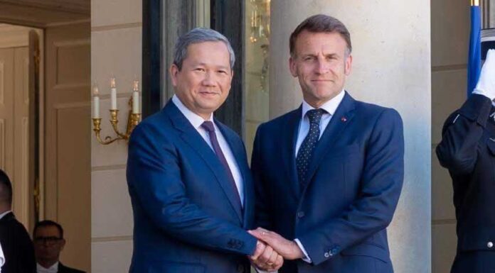 សម្តេចមហាបវរធិបតី ហ៊ុន ម៉ាណែត នាយករដ្ឋមន្ត្រីនៃព្រះរាជាណាចក្រកម្ពុជា បានជួបពិភាក្សាទ្វេភាគីជាមួយ ឯកឧត្តម អេម៉ានុយអែល ម៉ាក្រុង (Emmanuel Macron)