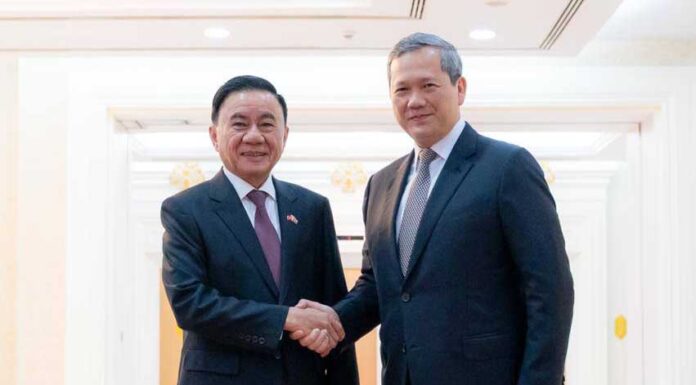 សម្ដេចមហាបវរធិបតី ហ៊ុន ម៉ាណែត នាយករដ្ឋមន្ត្រីនៃព្រះរាជាណាចក្រកម្ពុជា បានជួបពិភាក្សាការងារជាមួយ ឯកឧត្តម ត្រិន កឹមទូ សមាជិកការិយាល័យនយោបាយ