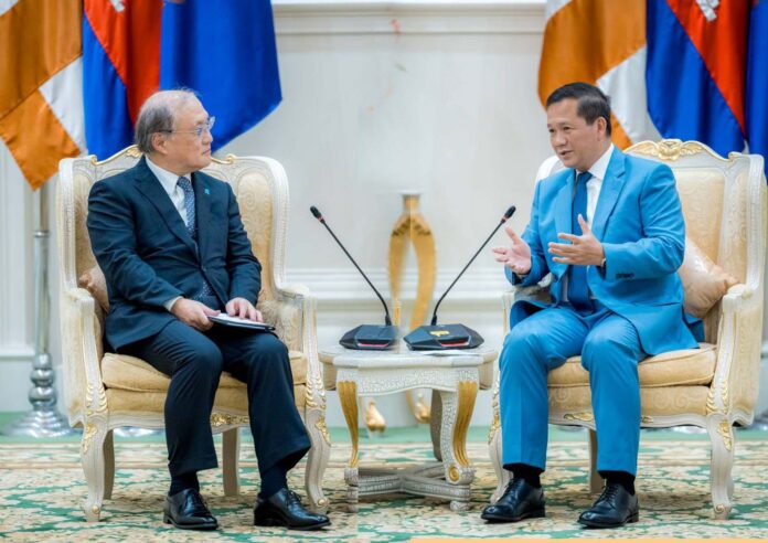 ក្នុងឱកាសនៃជំនួប, ឯកឧត្តមទីប្រឹក្សា បានវាយតម្លៃខ្ពស់ចំពោះភាពរីកចម្រើននៃទំនាក់ទំង និងកិច្ចសហប្រតិបត្តិការជប៉ុន-កម្ពុជា ដោយឯកឧត្តមបានគូសបញ្ជាក់ថា កម្ពុជាជាដៃគូដ៏មានសារៈសំខាន់របស់ជប៉ុន ទាំងនៅក្នុងក្របខ័ណ្ឌនៃកិច្ចសហប្រតិបត្តិការទ្វេភាគី និងពហុភាគី។ ឯកឧត្តមបានគោរពជម្រាបជូនសម្ដេចបវរធិបតីថា រាជរដ្ឋាភិបាលជប៉ុននឹងបន្តពូនជ្រុំទំនាក់ទំនង និងកិច្ចសហប្រតិបត្តិការរវាងប្រទេសទាំងពីរឱ្យកាន់តែរឹងមាំខ្លាំងក្លាថែមទៀត ស្របតាមស្មារតីនៃភាពជាដៃគូយុទ្ធសាស្រ្តគ្រប់ជ្រុងជ្រោយជប៉ុន-កម្ពុជា ។