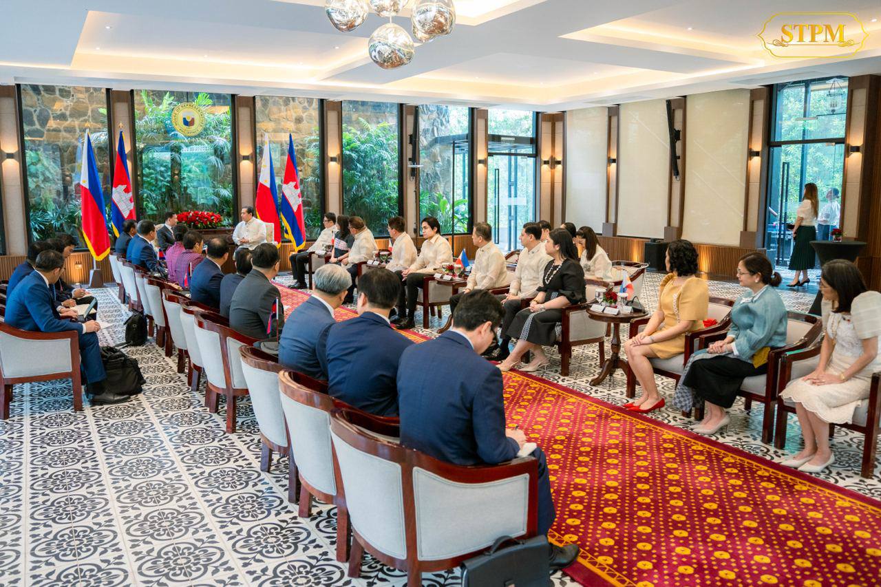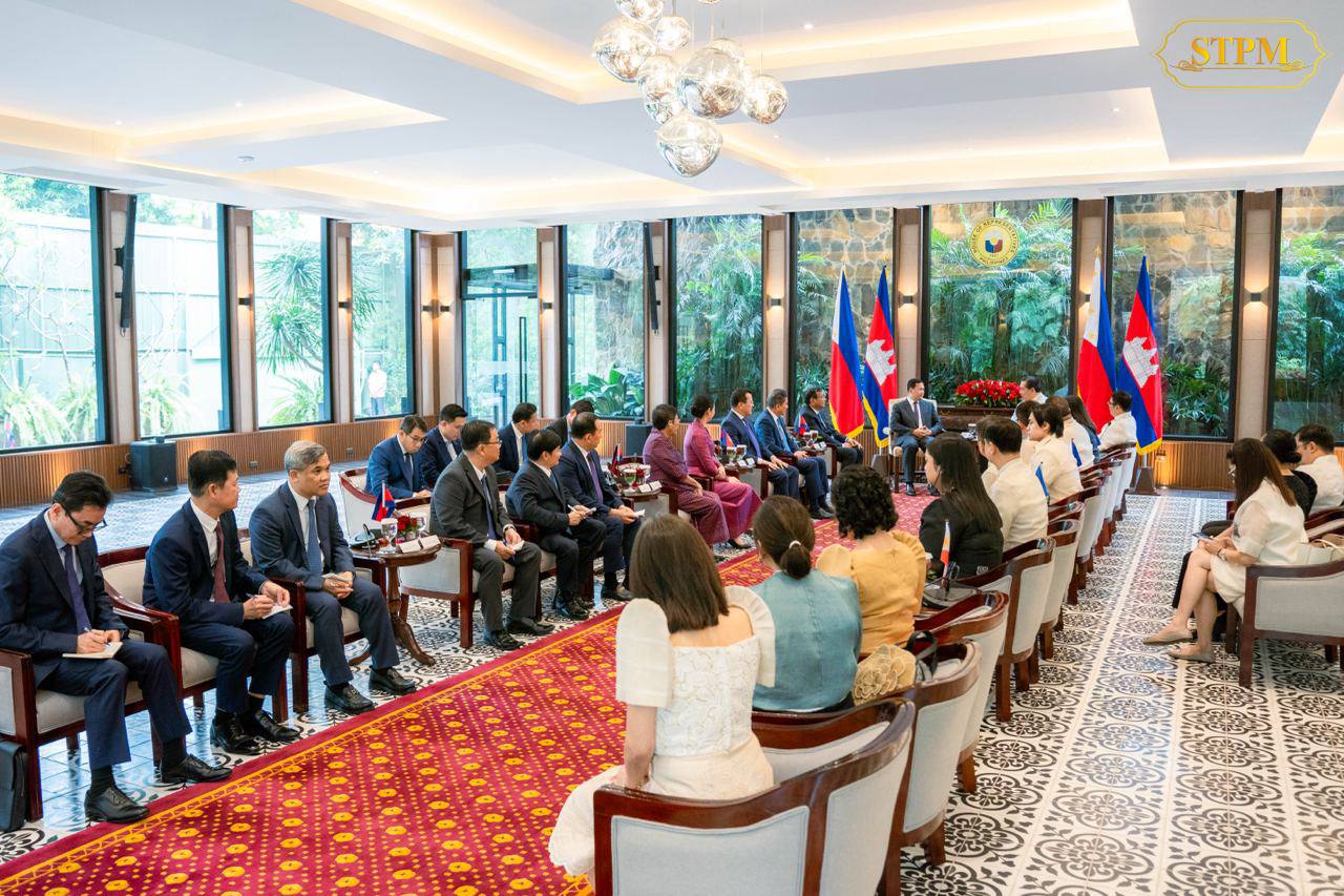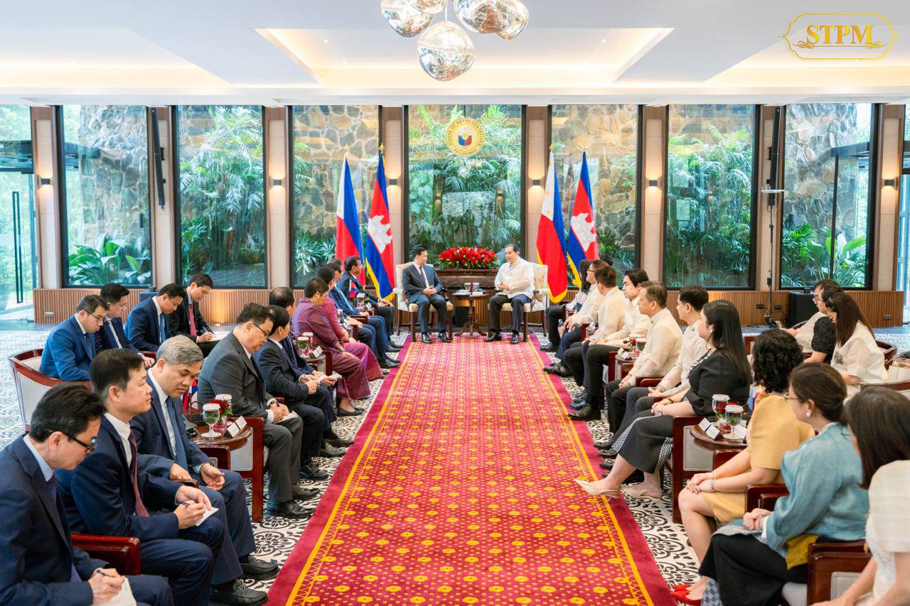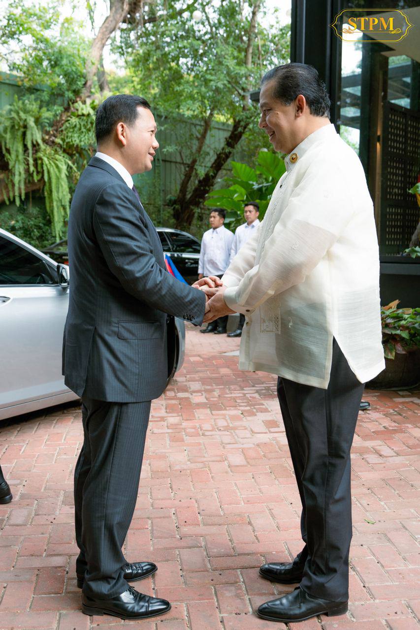 នារសៀលថ្ងៃទី១១ ខែកុម្ភៈ ឆ្នាំ២០២៥ សម្តេចមហាបវរធិបតី ហ៊ុន ម៉ាណែត នាយករដ្ឋមន្រ្តី នៃព្រះរាជាណាចក្រកម្ពុជា បានអញ្ជើញជួបពិភាក្សាការងារជាមួយ ឯកឧត្តម Ferdinand Martin Gomez Romualdez ប្រធានរដ្ឋសភា នៃសាធារណរដ្ឋហ្វីលីពីន នៅក្នុងឱកាសនៃដំណើរទស្សនកិច្ចផ្លូវការនៅទីក្រុងម៉ានីល, សាធារណរដ្ឋហ្វីលីពីន ចាប់ពីថ្ងៃទី១០-១១ ខែកុម្ភៈ ឆ្នាំ២០២៥។