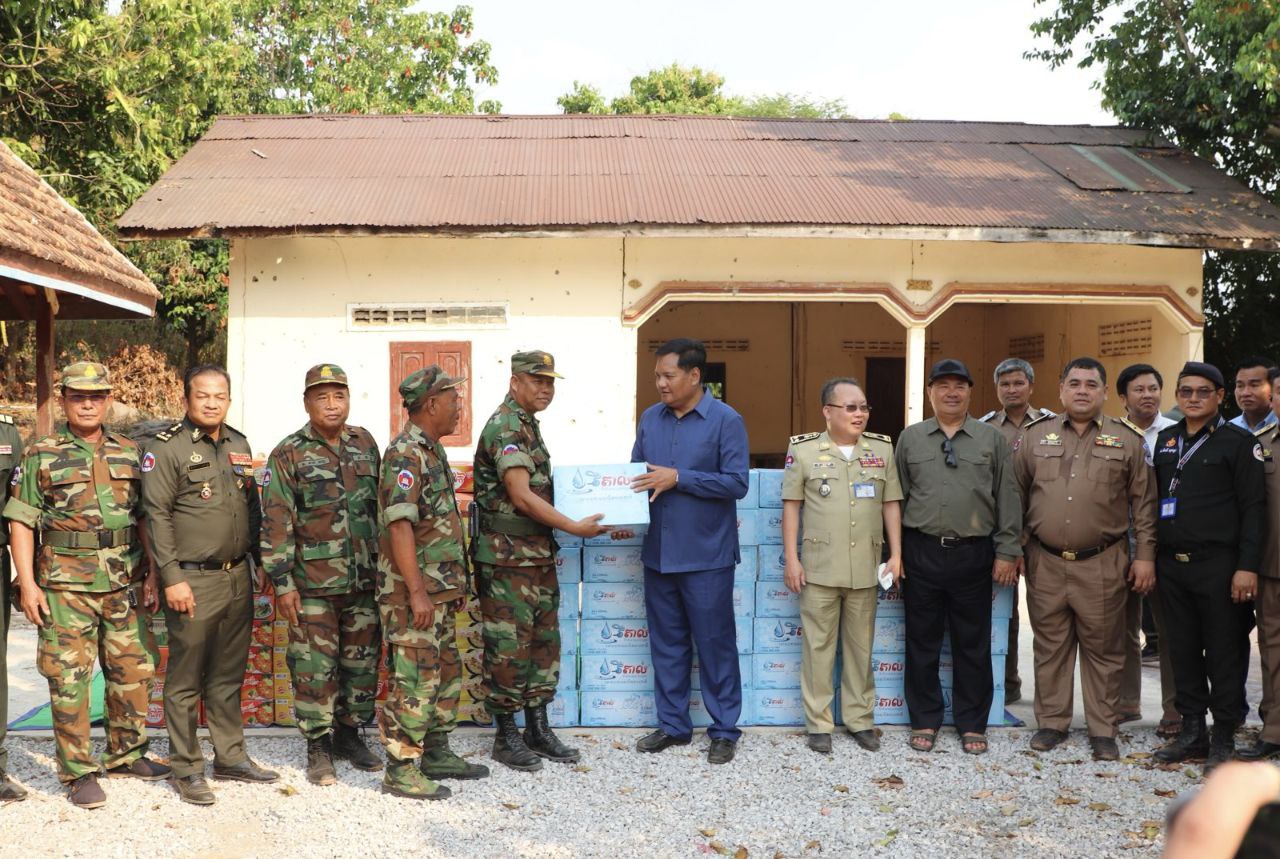 ក្នុងឱកាសនោះឯកឧត្ដមអភិបាលខេត្ត ក៏បានប្រគល់អំណោយរបស់សម្ដេចធិបតីនាយករដ្ឋមន្ត្រី និងលោកជំទាវបណ្ឌិត ជាគ្រឿងឧបភោគបរិភោគដល់កងកម្លាំងការពារតាមបន្ទាត់ព្រំដែន កម្ពុជា-ថៃ ដោយកងពលតូចលេខ៤២ ទទួលបានទឹកសុទ្ធ៧៥កេះ ត្រីខ៣០កេះ មី៣០កេះ ទឹកត្រី២០កេះ ទឹកស៊ីអ៊ីវ២០កេះ និងកងកម្លាំងនគរបាលវរការពារព្រំដែនគោគលេខ៧០២ ទទួលបានទឹកសុទ្ធ៥៥កេះ ត្រីខ២០កេះ មី៤៥កេះ ទឹកត្រី២០កេះ និងទឹកស៊ីអ៊ីវ២០កេះផងដែរ។