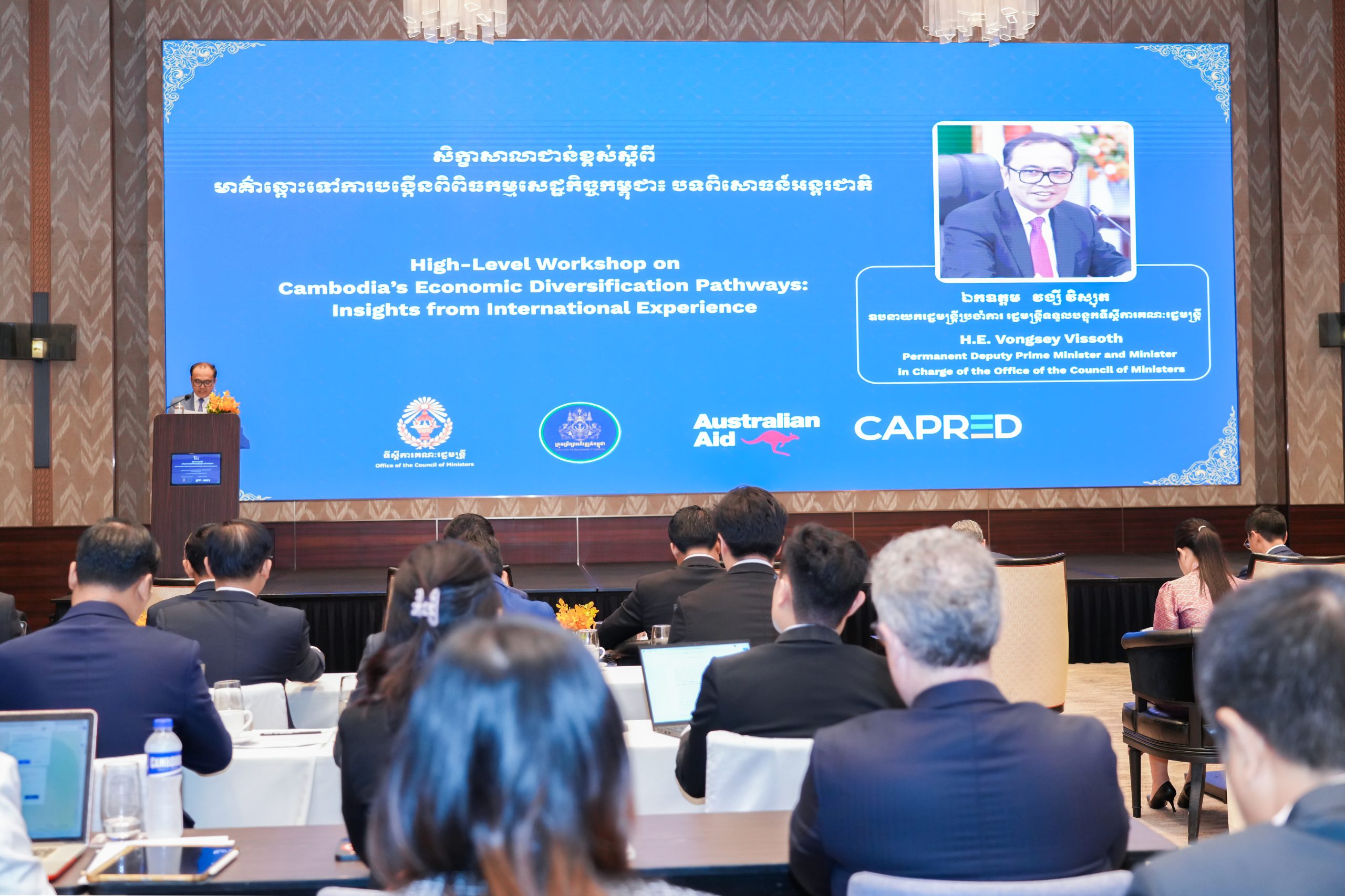 សិក្ខាសាលាដ៏ពិសេសនេះ រៀបចំដោយកម្មវិធីភាពជាដៃគូកម្ពុជា-អូស្ត្រាលី សម្រាប់ការអភិវឌ្ឍសេដ្ឋកិច្ចប្រកបដោយភាពធន់ ហៅកាត់ថាកម្មវិធី CAPRED របស់រដ្ឋាភិបាលអូស្ត្រាលី ក្នុងគោលបំណង ដើម្បីគាំទ្រដល់ការរៀបចំ និងការអនុវត្តគោលនយោបាយនានា ព្រមទាំងជួយសម្រួលដល់កិច្ចសន្ទនាគោលនយោបាយ និងបង្កើនការយល់ដឹងក្នុងចំណោមអ្នករៀបចំគោលនយោបាយ និងអ្នកជំនាញអន្តរជាតិធំៗនិងល្បីៗ លើកិច្ចការពិពិធកម្មសេដ្ឋកិច្ច៕
