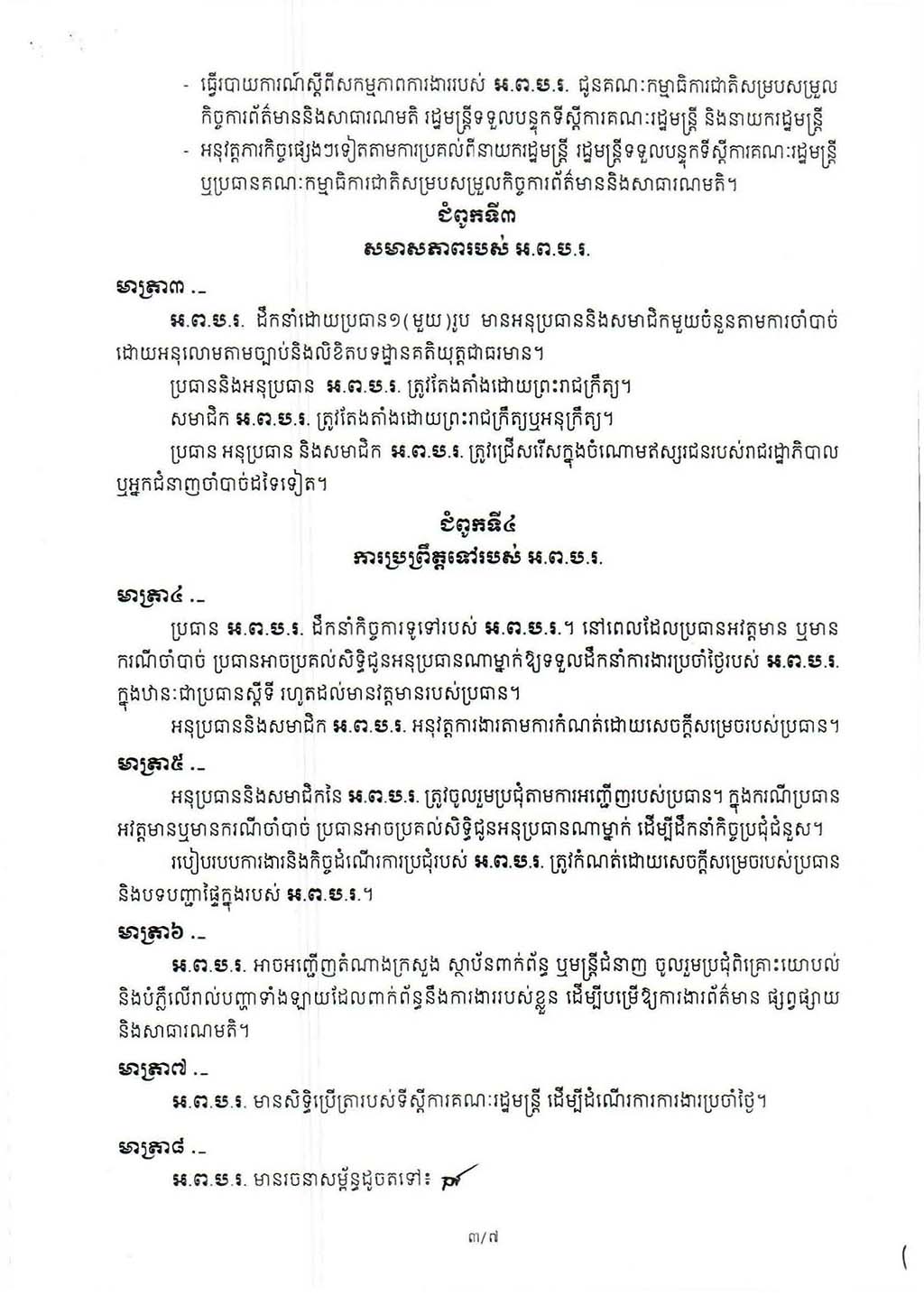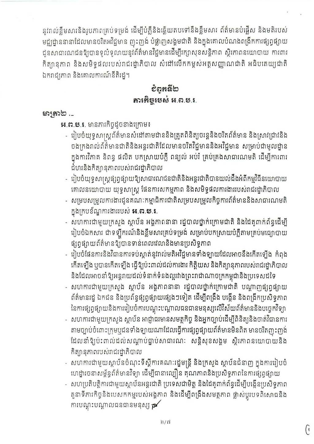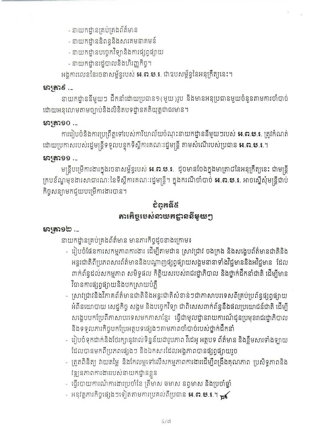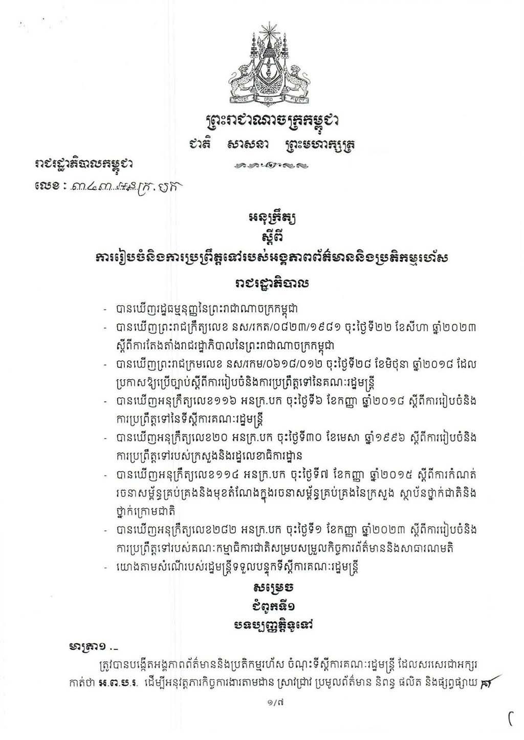 អនុក្រឹត្យ លេខ៣៤៣ អនក្រ.បក ស្ដីពីការរៀបចំ និងការប្រព្រឹត្តទៅរបស់អង្គភាពព័ត៌មាននិងប្រតិកម្មរហ័ស