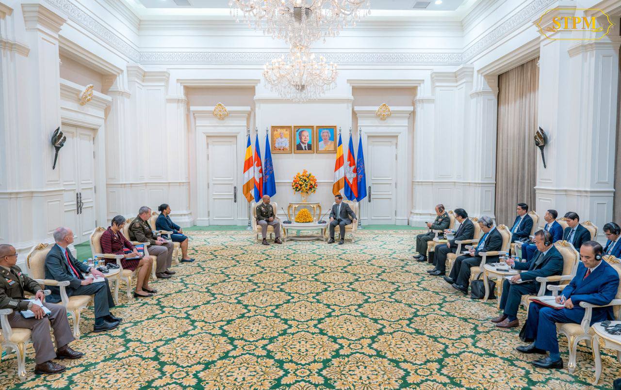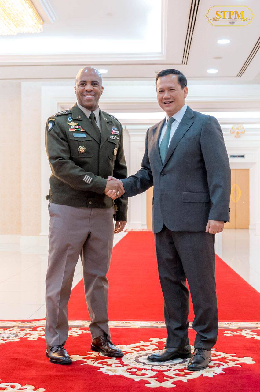 នារសៀលថ្ងៃទី២៤ ខែកុម្ភៈ ឆ្នាំ២០២៥, សម្ដេចមហាបវរធិបតី ហ៊ុន ម៉ាណែត នាយករដ្ឋមន្ត្រីនៃព្រះរាជាណាចក្រកម្ពុជា បានអនុញ្ញាតឱ្យ ឯកឧត្តមនាយឧត្តមសេនីយ៍ រ៉ូណាល់ ខ្លាក( Ronald P. CLARK) មេបញ្ជាការកងទ័ពជើងគោកសហរដ្ឋអាមេរិក ប្រចាំប៉ាស៊ីហ្វិក (USARPAC) ចូលជួបសម្ដែងការគួរសម និងពិភាក្សាការងារ នៅវិមានសន្ដិភាព។