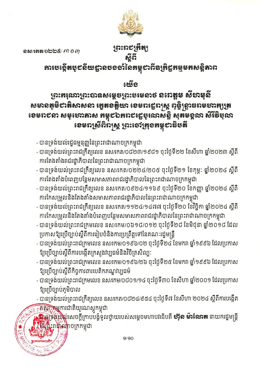(ភ្នំពេញ)៖ ព្រះករុណា ព្រះបាទសម្តេច ព្រះបរមនាថ នរោត្តម សីហមុនី ព្រះមហាក្សត្រ បានចេញព្រះរាជក្រឹត្យ ស្តីពី ការបង្កើតបូជនីយដ្ឋានចងចាំនៃកម្ពុជាពីឧក្រិដ្ឋកម្មមកសន្តិភាព។