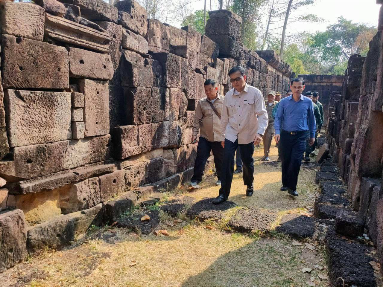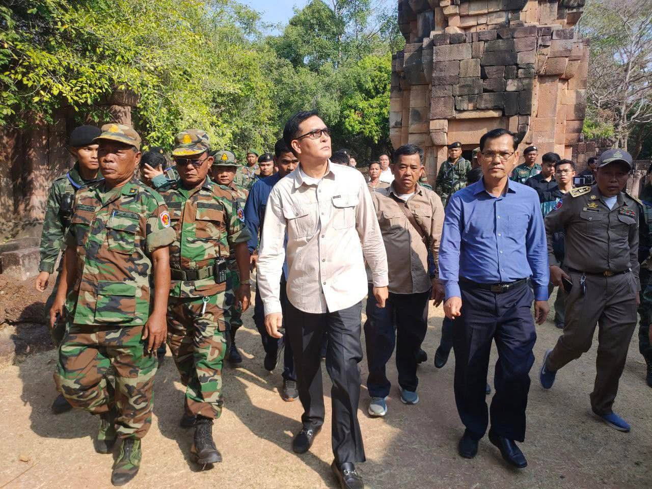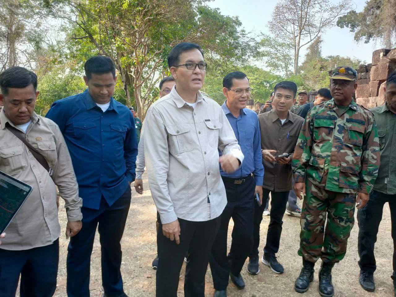ឧត្តរមានជ័យ៖ ថ្ងៃទី៤ខែមីនា ឆ្នាំ២០២៥ ឯកឧត្ដម ឡាំ ជា រដ្ឋមន្ត្រី ទទួលបន្ទុកកិច្ចការងារព្រុំដែនបានអញ្ជើញមកទ្សនាប្រាសាទតាមន្ត និងសួរសុខទុក្ខដល់កងកម្លាំងដែលឈរជើងទិសប្រាសាទតាមន្ត