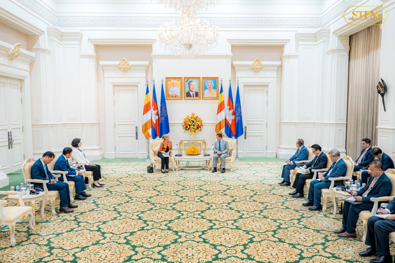 នារសៀលថ្ងៃទី២៥ ខែមីនា ឆ្នាំ២០២៥, សម្ដេចមហាបវរធិបតី ហ៊ុន ម៉ាណែត នាយករដ្ឋមន្ត្រីនៃព្រះរាជាណាចក្រកម្ពុជា បានអនុញ្ញាតឱ្យ លោកស្រី Mariam J. Sherman នាយិកាគ្រប់គ្រងនៃធនាគារពិភពលោក ប្រចាំកម្ពុជា, វៀតណាម និងឡាវ និង​សហការី ចូលជួបសម្តែងការគួរសម និងពិភាក្សាការងារ នៅវិមានសន្ដិភាព។