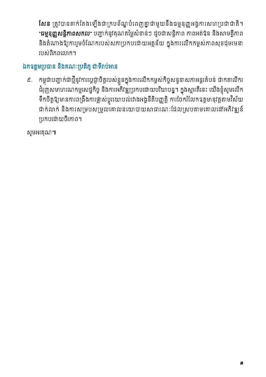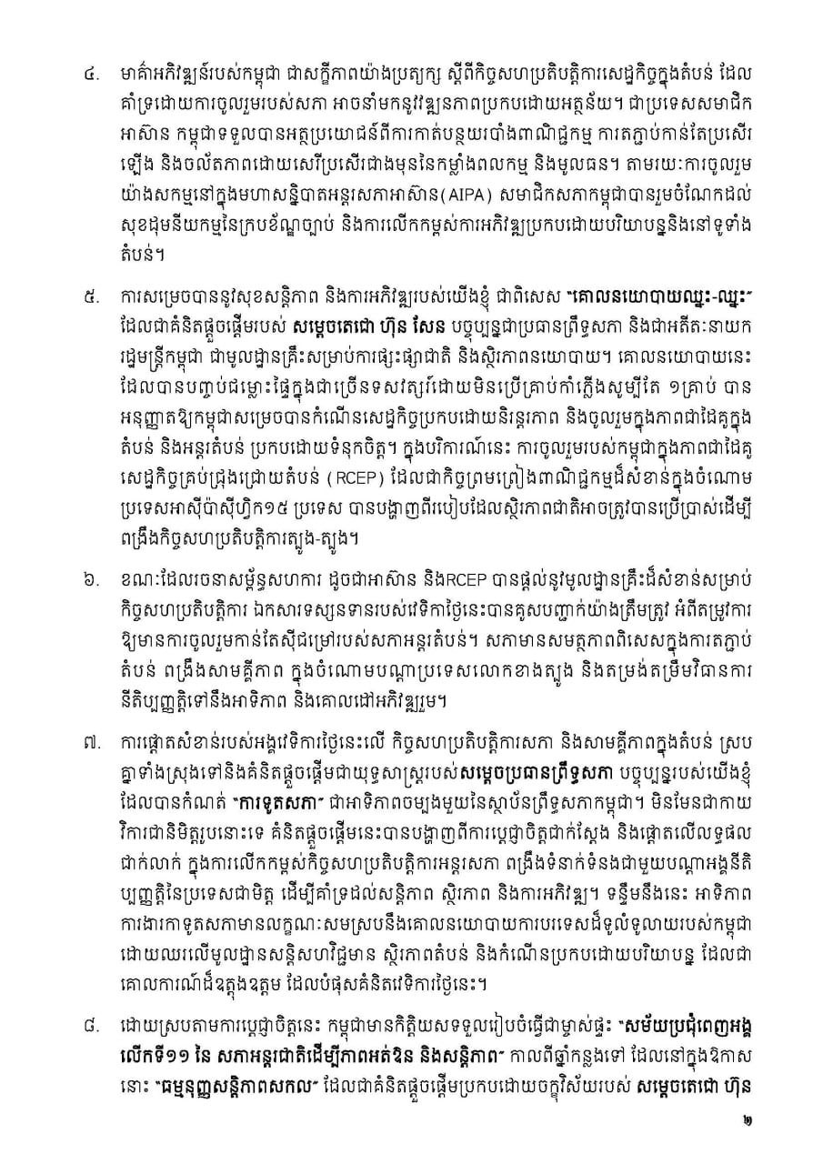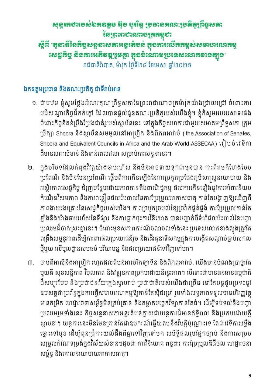 បទអន្តរាគមន៍ ឯកឧត្តម អ៊ុច បូររិទ្ធ អនុប្រធានទី១ ព្រឹទ្ធសភា វេទិកាលើកទី៣ នៃកិច្ចសន្ទនាសភាត្បូង-ត្បូង (The Third Edition of the South-South Parliamentary Dialogue Forum) លើមូលបទស្ដីពី “តួនាទីនៃកិច្ចសន្ទនាសភាអន្តរតំបន់ ក្នុងការលើកកម្ពស់សមាហរណកម្មសេដ្ឋកិច្ច និងការអភិវឌ្ឍរួមគ្នា ក្នុងចំណោមប្រទេសលោកខាងត្បូង”