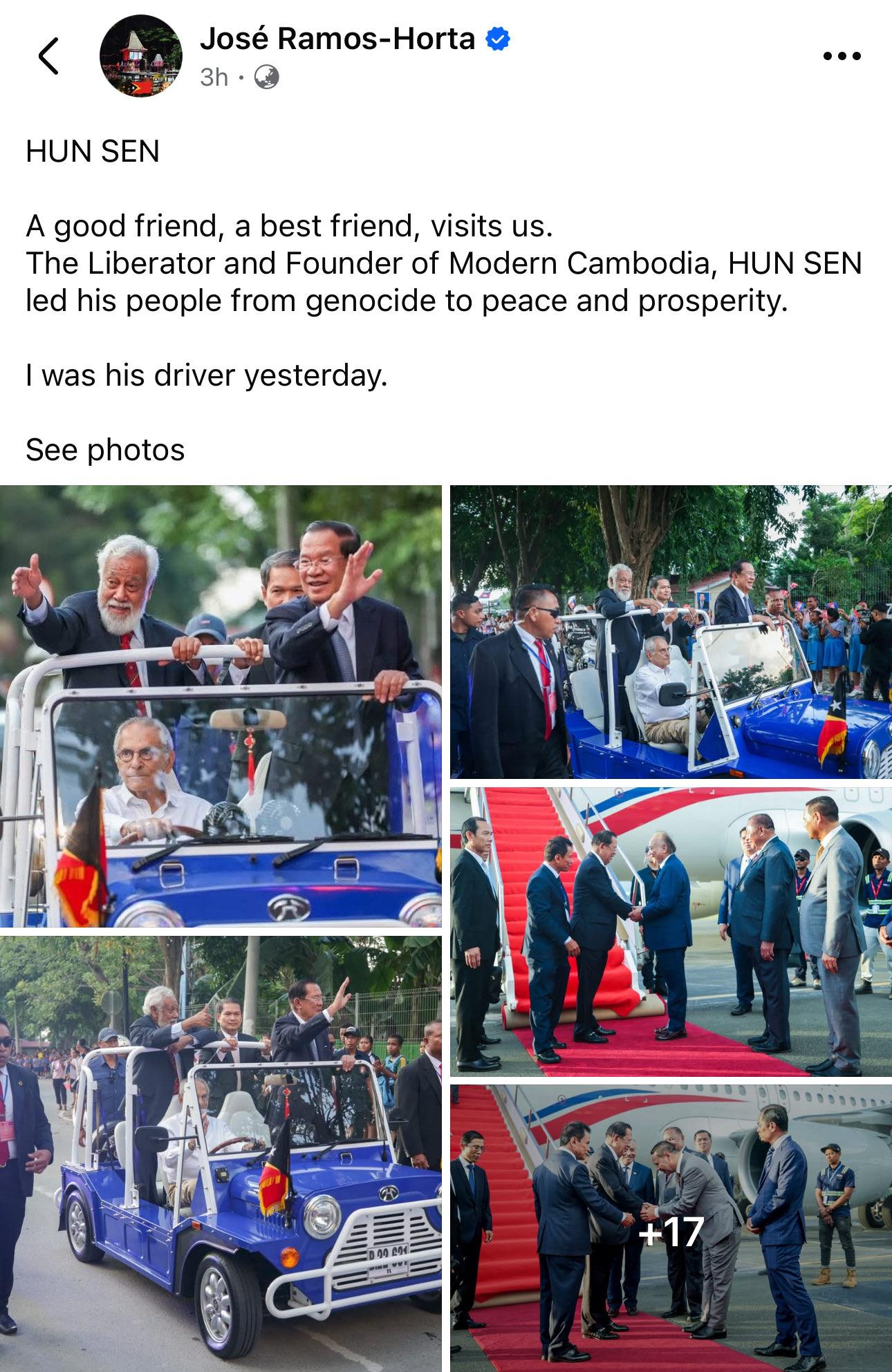 ប្រធានាធិបតីទីម័រ បង្ហោះសារចាត់ទុកថា សម្ដេចតេជោ ហ៊ុន សែន ជាមិត្តល្អ ដែលបានមកលេងផ្ទះរបស់លោក ហើយលោកបានបើកឡានជូនសម្ដេចដោយផ្ទាល់