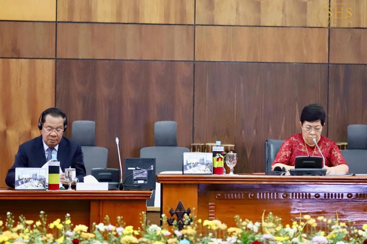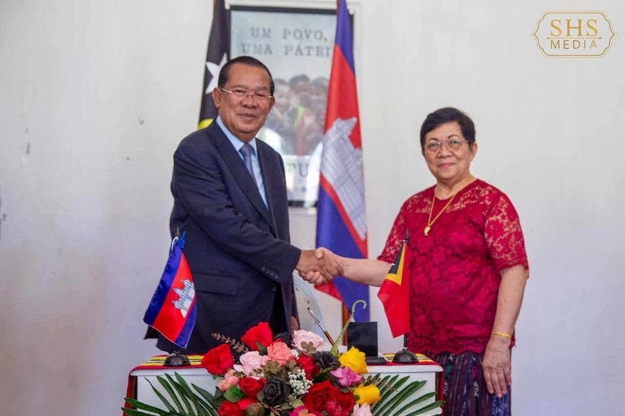 នាព្រឹកថ្ងៃព្រហស្បត្តិ៍ ១២កើត ខែពិសាខ ឆ្នាំម្សាញ់ សប្តស័ក ពុទ្ធសករាជ២៥៦៨ ត្រូវនឹងថ្ងៃទី៨ ខែឧសភា ឆ្នាំ២០២៥ សម្តេចអគ្គមហាសេនាបតីតេជោ ហ៊ុន សែន ប្រធានព្រឹទ្ធសភានៃព្រះរាជាណាចក្រកម្ពុជា បានជួបពិភាក្សាការងារជាមួយ លោកជំទាវ Maria Fernanda Lay ប្រធានរដ្ឋសភានៃសាធារណរដ្ឋប្រជាធិបតេយ្យទីម័រឡេស្តេ នៅវិមានរដ្ឋសភាជាតិទីម័រឡេស្តេ ទីក្រុងឌីលី។