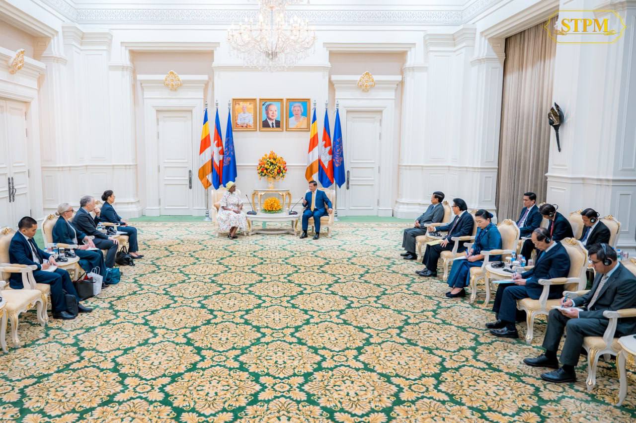 នាព្រឹកថ្ងៃទី១៣ ខែឧសភា ឆ្នាំ២០២៥, សម្តេចមហាបវរធិបតី ហ៊ុន ម៉ាណែត នាយករដ្ឋមន្ត្រីនៃព្រះរាជាណាចក្រកម្ពុជា បានអនុញ្ញាតឱ្យលោកជំទាវ Winnie Byanyima អគ្គលេខាធិការរង អង្គការសហប្រជាជាតិ និងជានាយិកាប្រតិបត្តិអង្គការ UNAIDS ចូលជួបសម្តែងការគួរសម និងពិភាក្សាការងារ នៅវិមានសន្តិភាព។