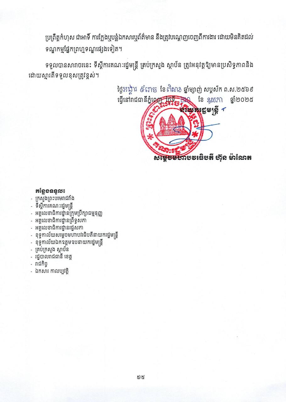 លេខៈ១១.សរ សារាចរ ស្តីពី ការធ្វើបច្ចុប្បន្នភាពរចនាសម្ព័ន្ធ និងជំរឿនមន្ត្រីជាក់ស្តែងនៅតាមរចនាសម្ព័ន្ធរបស់ ក្រសួង ស្ថាប័នចំណុះអង្គការនីតិប្រតិបត្តិ