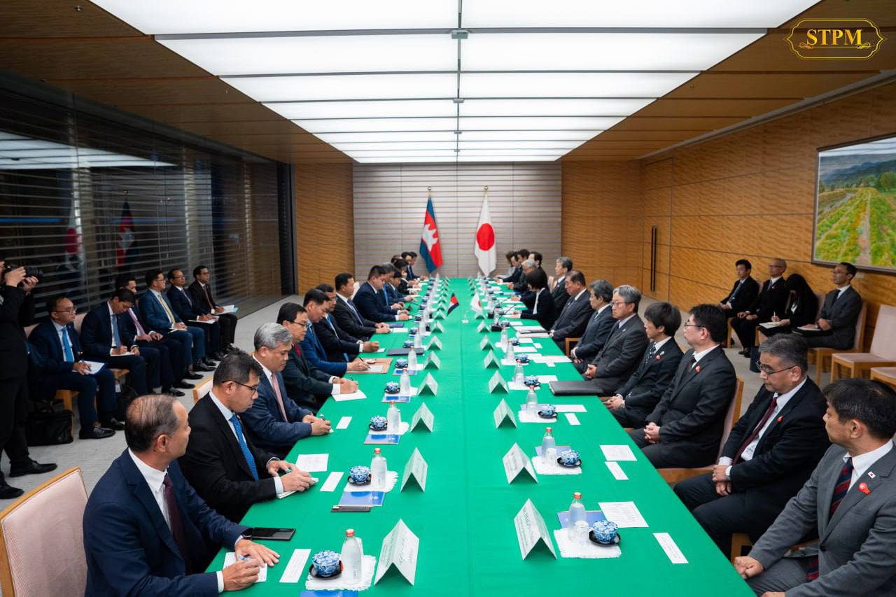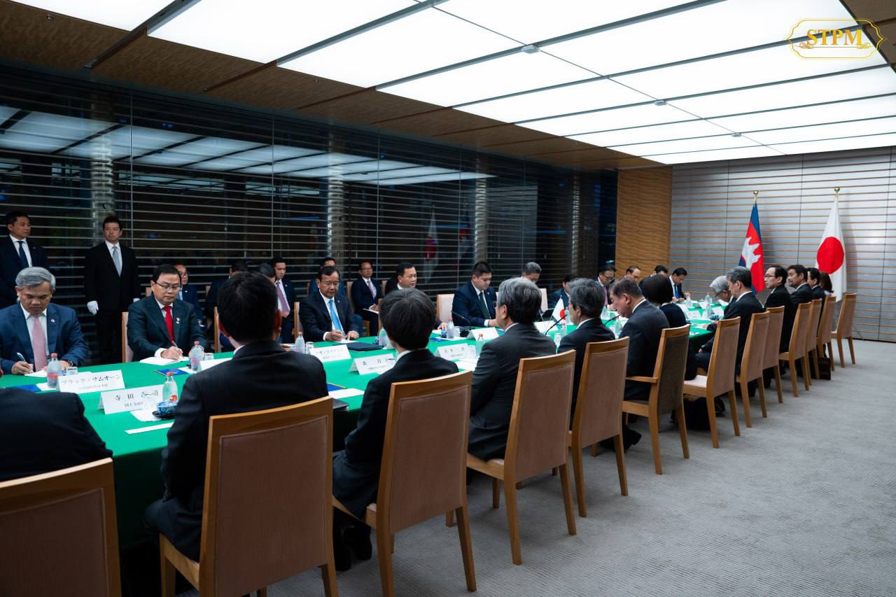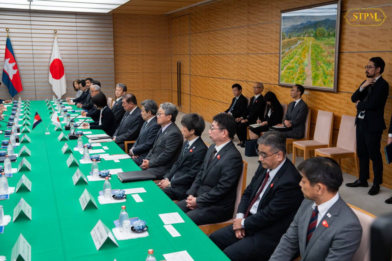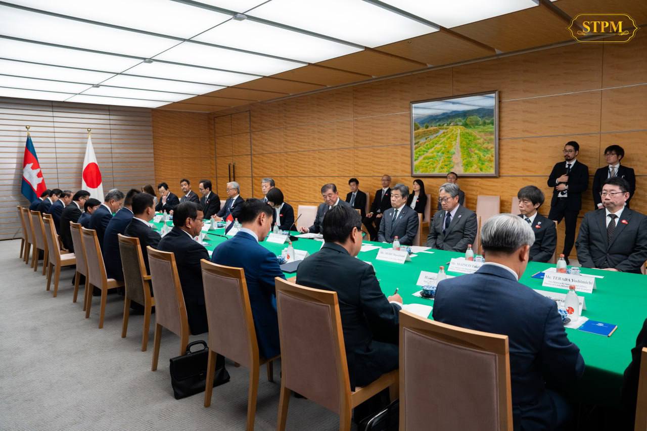 នាល្ងាច ថ្ងៃទី៣០ ខែឧសភា ឆ្នាំ២០២៥, សម្តេចមហាបវរធិបតី ហ៊ុន ម៉ាណែត នាយករដ្ឋមន្ត្រីនៃព្រះរាជាណាចក្រកម្ពុជា បានជួបពិភាក្សាទ្វេភាគីជាមួយ ឯកឧត្តម ISHIBA Shigeru នាយករដ្ឋមន្រ្តីជប៉ុន ក្នុងឱកាសនៃដំណើរទស្សនកិច្ចការងារផ្លូវការ នៅថ្ងៃទី២៨-៣១ ខែឧសភា ឆ្នាំ២០២៥ នៅទីក្រុងតូក្យូ ប្រទេសជប៉ុន។
