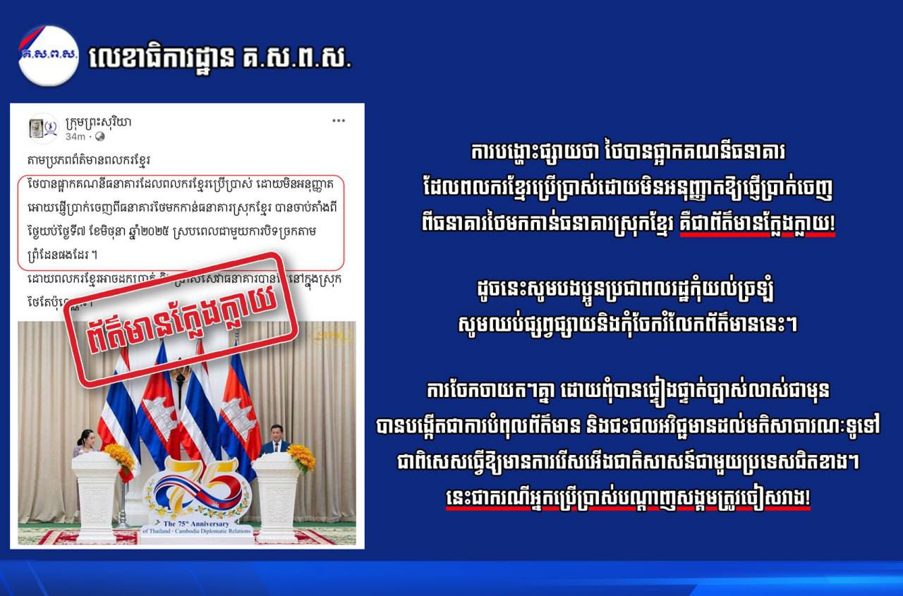ដូចនេះសូមបងប្អូនប្រជាពលរដ្ឋកុំយល់ច្រឡំ សូមឈប់ផ្សព្វផ្សាយនិងកុំចែករំលែកព័ត៌មាននេះ។