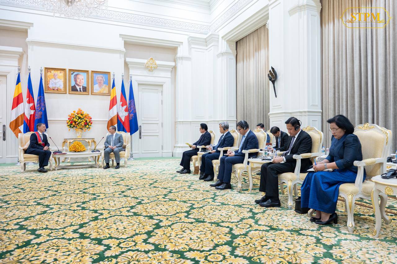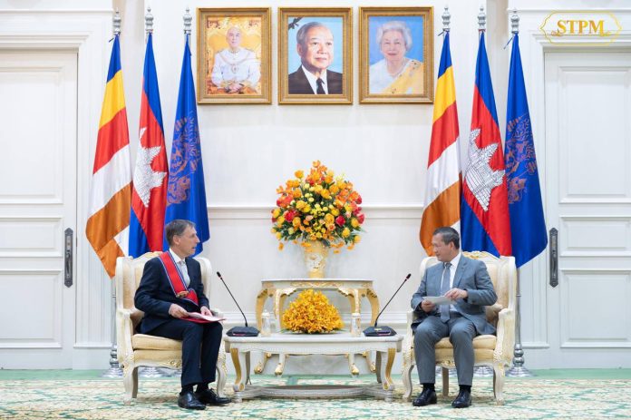 ជាការឆ្លើយតប, សម្ដេចបវរធិបតី បានស្វាគមន៍ចំពោះឯកឧត្តមឯកអគ្គរដ្ឋទូត និងសហការី និងបានវាយតម្លៃខ្ពស់ចំពោះកិច្ចខិតខំប្រឹងប្រែងរបស់ឯកឧត្តមឯកអគ្គរដ្ឋទូត ដែលបានចូលរួមចំណែកដល់ការពង្រឹង និងពង្រីកទំនាក់ទំនង និងកិច្ចសហប្រតិបត្តិការរវាងប្រទេសទាំពីរ។ សម្ដេចបវរធិបតី ក៏បានសម្ដែងនូវការពេញចិត្ត និងវាយតម្លៃខ្ពស់ភាពរីកចម្រើននៃទំនាក់ទំនង និងកិច្ចសហប្រតិបត្តិការនៃប្រទេសទាំងពីរ ជាពិសេសការផ្សារភ្ជាប់ទំនាក់ទំនងរវាងថ្នាក់ដឹកនាំជាន់ខ្ពស់នៃរដ្ឋាភិបាល ក៏ដូចជាវិស័យឯកជននៃប្រទេសទាំងពីរ។ សម្ដេចបវរធិបតី បានអរគុណចំពោះការគាំទ្ររបស់បារាំងក្នុងកិច្ចសហប្រតិបត្តិការលើវិស័យជាច្រើន នាពេលកន្លងមក និងបានគូសបញ្ជាក់ពីការបន្តពង្រឹង និងពង្រីកទំនាក់ទំនង និងកិច្ចសហប្រតិបត្តិទ្វេភាគី ឱ្យកាន់តែរឹងមាំ និងរីកចម្រើនបន្ថែមទៀត។