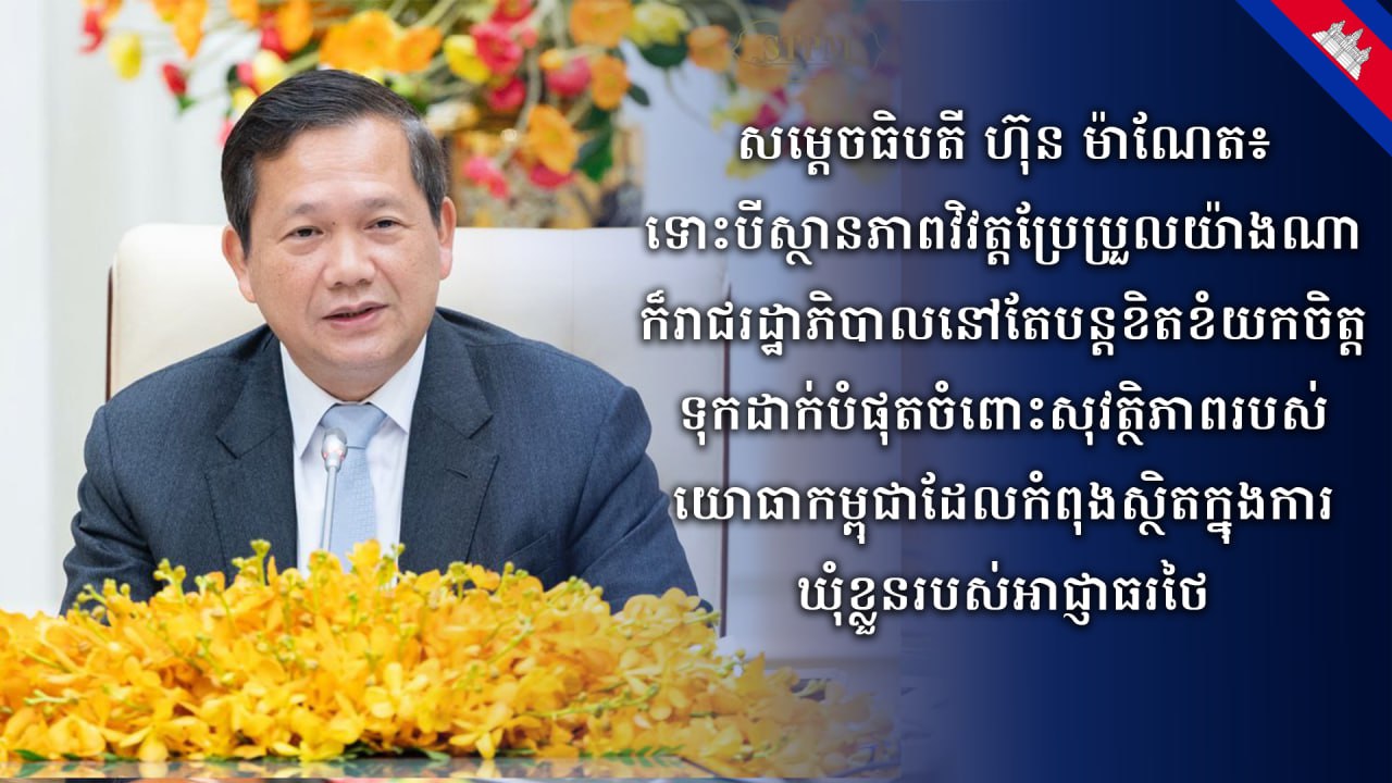 ទោះជាស្ថានការណ៍មានការវិវត្តប្រែប្រួលយ៉ាងណា ក៏រាជរដ្ឋាភិបាលកម្ពុជា នៅតែបន្តតាមដានដោយយកចិត្តទុកដាក់បំផុតចំពោះសុវត្ថិភាពរបស់យោធាកម្ពុជាចំនួន១៨រូប ដែលកំពុងស្ថិតក្នុងការឃុំខ្លួនរបស់អាជ្ញាធរថៃ ចាប់តាំងពីថ្ងៃទី២៩ ខែកក្កដា ឆ្នាំ២០២៥ និងកំពុងចាត់វិធានការតាមយន្តការចាំបាច់ផ្សេងៗដើម្បីឱ្យមានការដោះលែងយោធាកម្ពុជាឱ្យបានឆាប់បំផុត និងមានសុវត្ថិភាព។