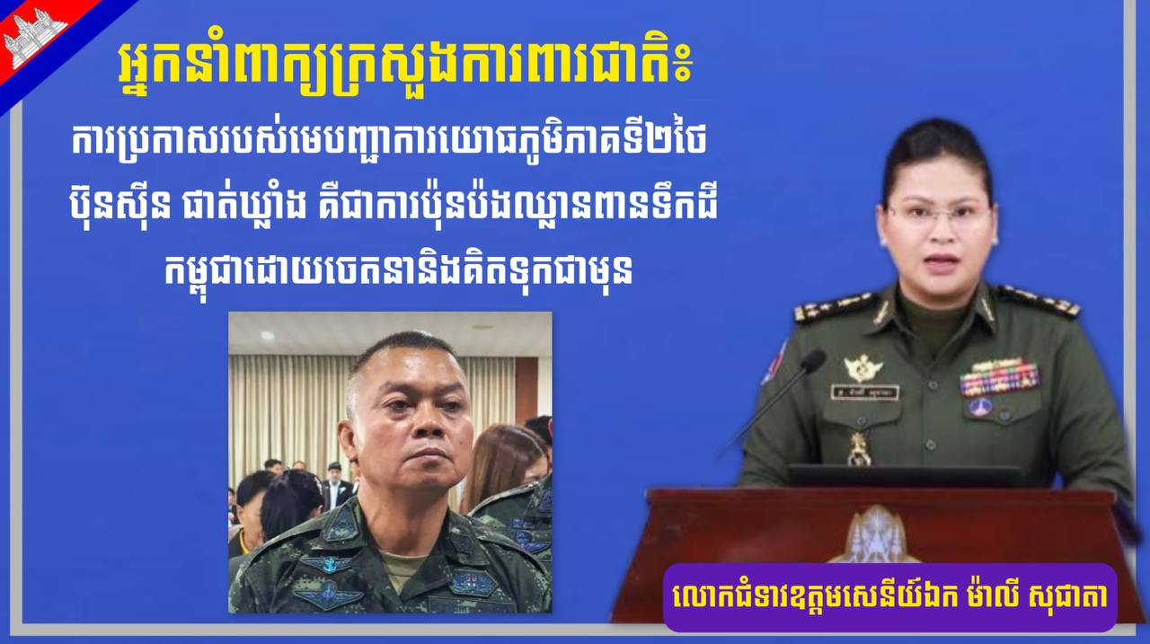 អ្នកនាំពាក្យក្រសួងការពារជាតិ៖ ការប្រកាសរបស់មេបញ្ជាការយោធភូមិភាគទី២ថៃ ប៊ុនស៊ីន ផាត់ឃ្លាំង គឺជាការប៉ុនប៉ងឈ្លានពានទឹកដីកម្ពុជាដោយចេតនា និងគិតទុកជាមុន