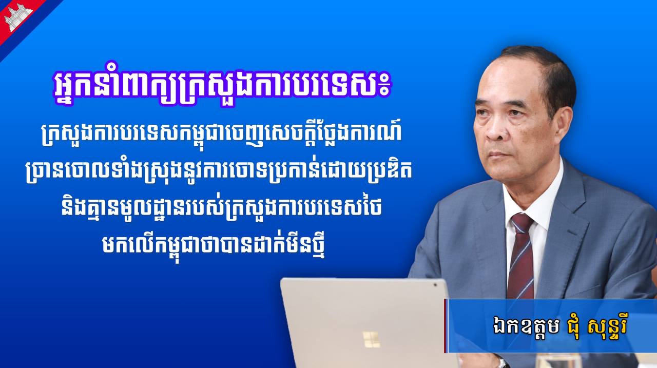 ឯកឧត្តម ជុំ សុន្ទរី រដ្ឋលេខាធិការ និងជាអ្នកនាំពាក្យក្រសួងការបរទេសនិងសហប្រតិបត្តិការអន្តរជាតិ បានគូសបញ្ជាក់ថា កម្ពុជាពុំដែលបានដាក់មីនថ្មីទាល់តែសោះ នៅក្នុងឋានៈជារដ្ឋភាគីនៃអនុសញ្ញាអូតាវ៉ាតាំងពីឆ្នាំ១៩៩៩មក កម្ពុជាត្រូវបានទទួលស្គាល់ជាអន្ដរជាតិ សម្រាប់សមិទ្ធផលរបស់ខ្លួនក្នុងការបោសសម្អាតមីននៅក្នុងប្រទេស ក៏ដូចជានៅក្រៅប្រទេស។ ការចោទប្រកាន់ពីការដាក់មីនថ្មី គឺពុំមានភស្ដុតាងដែលអាចទុកចិត្ដបានទាល់តែសោះ។ ការច្រានចោលនេះរបស់ឯកឧត្ដមអ្នកនាំពាក្យក្រសួងការបរទេស ធ្វើឡើងនៅក្នុងសេចក្តីសង្ខេបព័ត៌មានប្រចាំថ្ងៃស្តីពី «លទ្ធផលនៃការអនុវត្តបទឈប់បាញ់រវាងកម្ពុជា-ថៃ» នៅវេលាម៉ោង៧:០០ព្រឹក ថ្ងៃទី១៤ ខែសីហា ឆ្នាំ២០២៥។