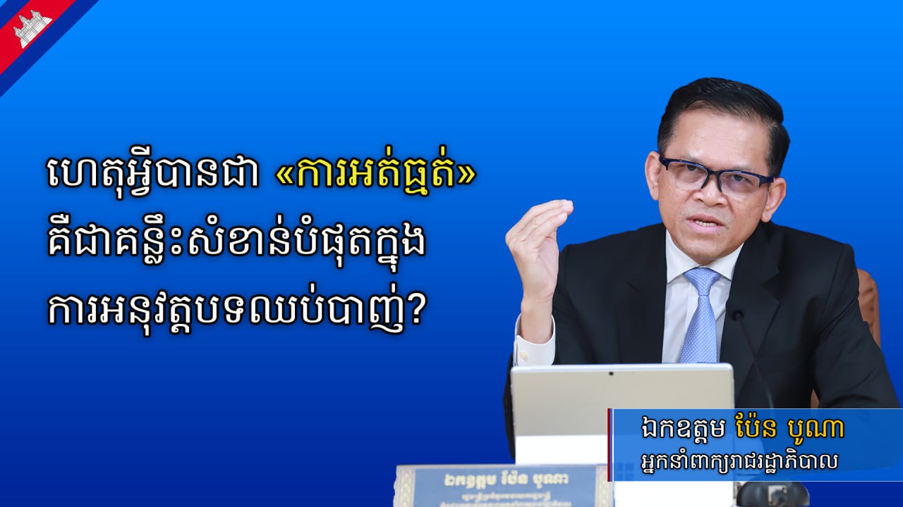 ថ្លែងនៅក្នុងការធ្វើបច្ចុប្បន្នភាពព័ត៌មានស្ដីពី «លទ្ធផលនៃការអនុវត្តបទឈប់បាញ់រវាងកម្ពុជា-ថៃ» នៅទីស្ដីការគណៈរដ្ឋមន្ត្រី នាវេលាម៉ោង ៧:០០ ព្រឹកថ្ងៃសុក្រ ទី១៥ ខែសីហា ឆ្នាំ២០២៥ នេះ ឯកឧត្តម ប៉ែន បូណា អ្នកនាំពាក្យរាជរដ្ឋាភិបាលកម្ពុជា បានគូសបញ្ជាក់ថា ចំពោះការអនុវត្តបទឈប់បាញ់ «ការអត់ធ្មត់» គឺជាគន្លឹះសំខាន់បំផុត ពីព្រោះកិច្ចព្រមព្រៀងឈប់បាញ់នេះមិនមែនកើតឡើងតែរវាងថៃនិងកម្ពុជាប៉ុណ្ណោះទេ តែវាកើតឡើងដោយការចូលរួមពីអន្តរជាតិ ពោលគឺកើតចេញពីកិច្ចប្រជុំពិសេសកាលពីថ្ងៃទី២៨ ខែកក្កដា ឆ្នាំ២០២៥ នៅទីក្រុងពូត្រាចាយ៉ា ដែលមានម៉ាឡេស៊ីជាម្ចាស់ផ្ទះ សហការរៀបចំដោយសហរដ្ឋអាមេរិក និងមានការចូលរួមយ៉ាងសកម្មពីប្រទេសចិន។