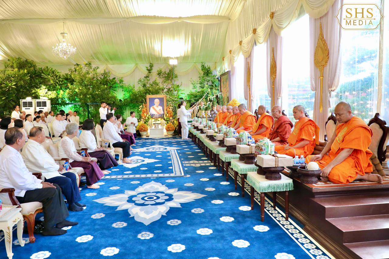 ​បន្ទាប់ពីស្តាប់ព្រះធម៌ទេសនាសម្តែងដោយសម្តេចព្រះពោធិវង្សកិត្តិបណ្ដិត ណយ ច្រឹក សម្តេចព្រះសង្ឃនាយករងទី១នៃព្រះរាជាណាចក្រកម្ពុជារួចមកសម្តេចអគ្គមហាសេនាបតីតេជោ ប្រមុខរដ្ឋស្តីទីនៃព្រះរាជាណាចក្រកម្ពុជា ឯកឧត្តម លោកជំទាវ លោកអ្នកឧកញ៉ា ជាបុត្រា បុត្រី និង ក្រុមគ្រួសារ បានថ្វាយ ប្រគេន ទេយ្យវត្ថុ គ្រឿង អត្ថបរិក្ខា ចំពោះ សម្តេចព្រះសង្ឃនាយក សម្តេចព្រះសង្ឃនាយករង សម្តេចព្រះមហាថេរ និងព្រះរាជាគណៈគ្រប់ព្រះអង្គ​ ប្រកបដោយសទ្ធាជ្រះថ្លាដ៍ខ្ពង់ខ្ពស់បំផុត៕