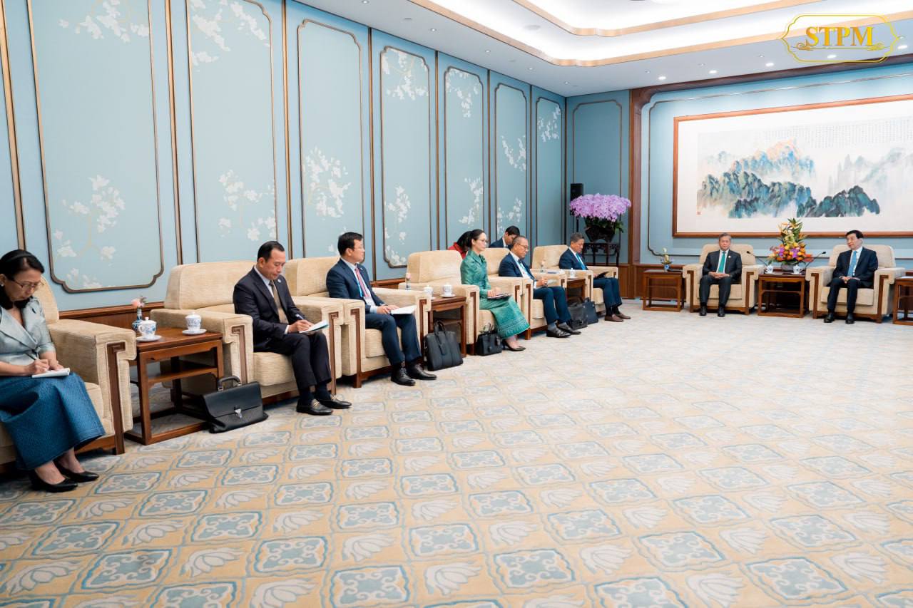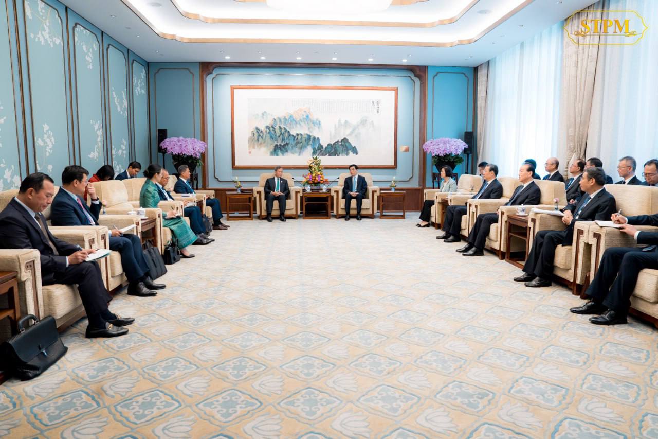 ក្នុងជំនួបនោះ ឯកឧត្តមប្រធានសភា បានសម្តែងការស្វាគមន៍យ៉ាងកក់ក្តៅចំពោះសម្តេចបវរធិបតី និងគណៈប្រតិភូរាជរដ្ឋាភិបាលកម្ពុជា។ ឯកឧត្តមបានចាត់ទុកវត្តមានរបស់សម្តេចបវរធិបតី និងគណៈប្រតិភូថា បានបង្ហាញពីការយកចិត្តទុកដាក់យ៉ាងជ្រាលជ្រៅលើការពង្រឹងទំនាក់ទំនងជាប្រពៃណី និងយូរអង្វែងរវាងប្រទេសទាំងពីរ។ ឯកឧត្តមប្រធានបានថ្លែងថា ទំនាក់ទំនងកម្ពុជា-ចិនបានឆ្លងកាត់ការសាកល្បងនៃការប្រែប្រួលសភាពការណ៍អន្តរជាតិ និង កាន់តែមានភាពរឹងមាំ និងស្ថិតស្ថេយូរអង្វែង។ ឯកឧត្តមប្រធានក៏បានបន្ថែមថា ក្នុងជំនួបការងារទ្វេភាគីនាថ្ងៃទី ៣០ ខែសីហា ឯកឧត្តមប្រធានាធិបតីចិន ស៊ី ជីនពីង បានដាក់ចេញទិសដៅសំខាន់ៗ ដើម្បីធ្វើឱ្យទំនាក់ទំនងចិន-កម្ពុជា កាន់តែស៊ីជម្រៅថែមទៀត។ ក្នុងបរិបទនេះ ប្រទេសចិននឹងនៅតែបន្តគាំទ្រកម្ពុជាដោយឥតងាករេ។