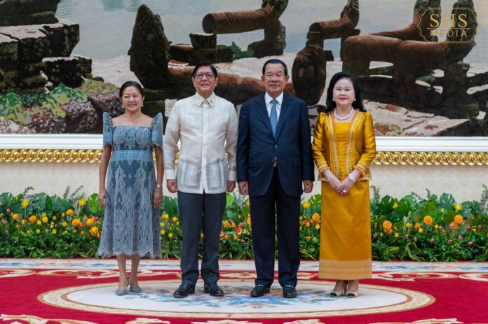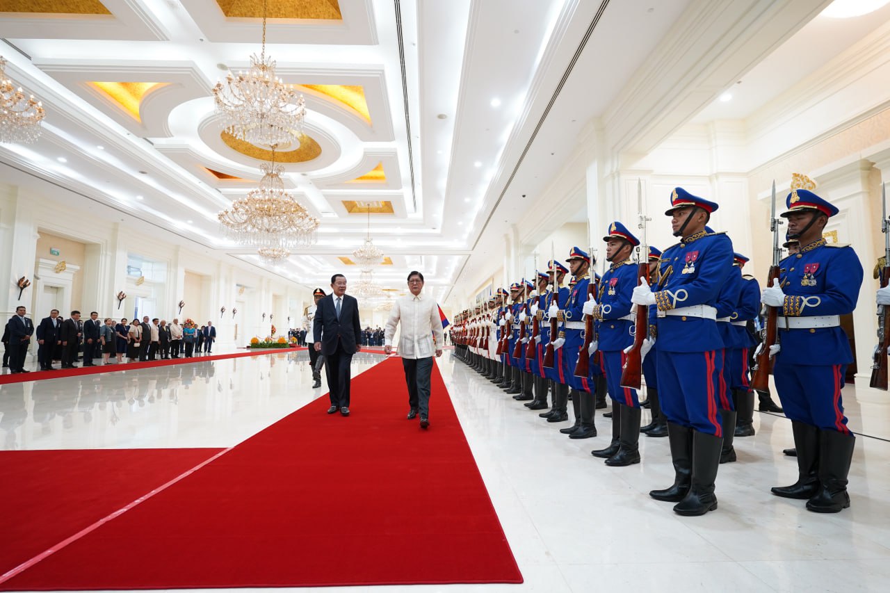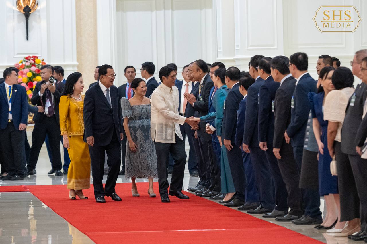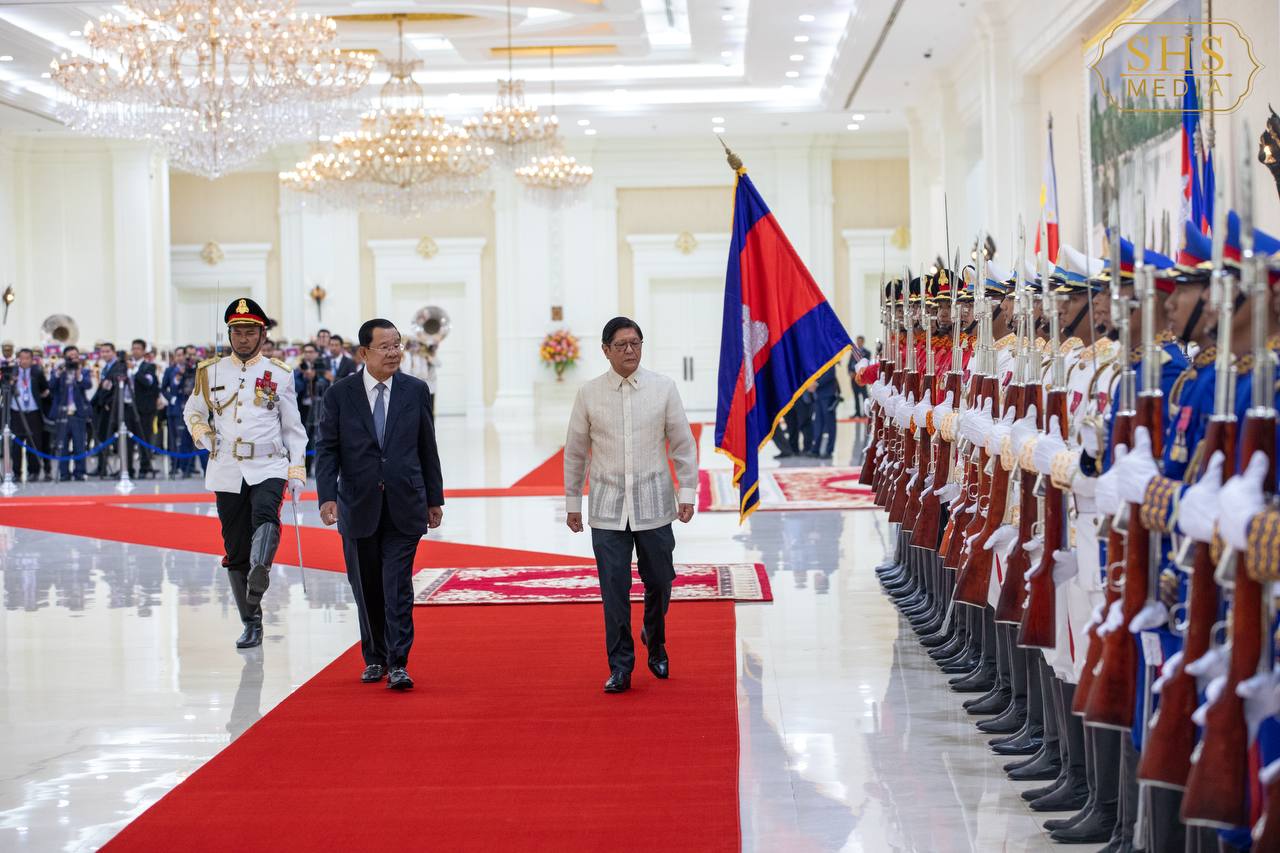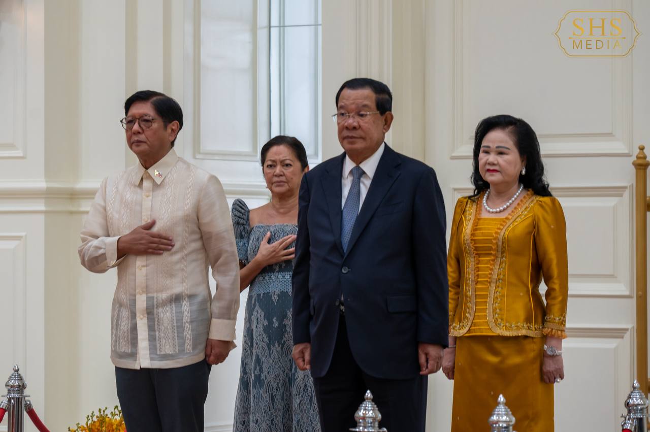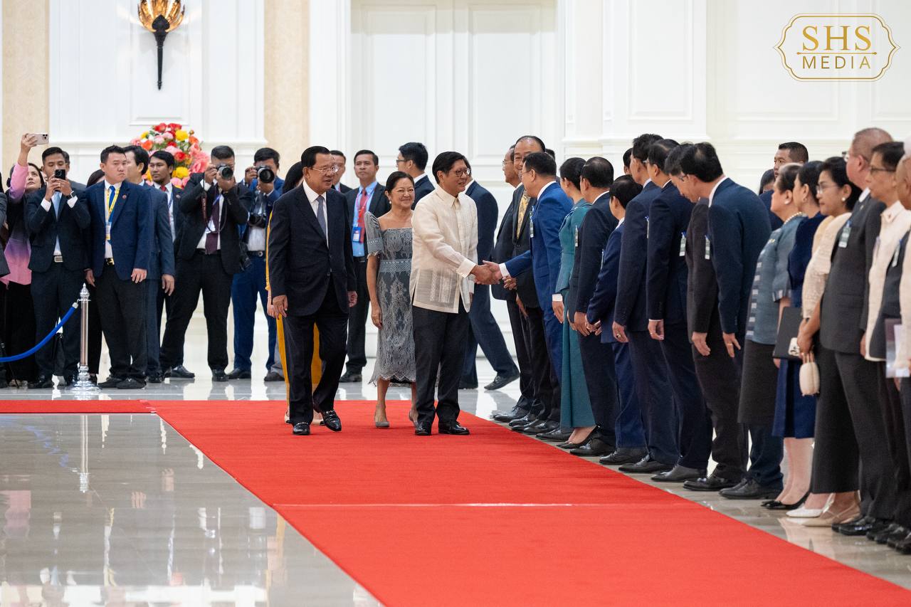 នៅវិមានសន្តិភាព រាជធានីភ្នំពេញ នាព្រឹកថ្ងៃចន្ទ ១រោច ខែភទ្របទ ឆ្នាំម្សាញ់ សប្តស័ក ពុទ្ធសករាជ ២៥៦៩ ត្រូវនឹងថ្ងៃទី៨ ខែកញ្ញា ឆ្នាំ២០២៥ នេះ សម្តេចអគ្គមហាសេនាបតីតេជោ ហ៊ុន សែន ប្រមុខរដ្ឋស្តីទីនៃព្រះរាជាណាចក្រកម្ពុជា និងសម្តេចកិត្តិព្រឹទ្ធបណ្ឌិត ប៊ុន រ៉ានី ហ៊ុនសែន បានអញ្ជើញទទួលបដិសណ្ឋារកិច្ចស្វាគមន៍ នូវដំណើរបំពេញទស្សនកិច្ចផ្លូវរដ្ឋ របស់ ឯកឧត្តម Ferdinand Romualdez Marcos Jr. ប្រធានាធិបតីនៃសាធារណរដ្ឋហ្វីលីពីន និងលោកជំទាវ Louise Araneta-Marcos ក្នុងឱកាសដែល ឯកឧត្តម និងលោកជំទាវ អញ្ជើញបំពេញទស្សនកិច្ចផ្លូវរដ្ឋរយៈពេល៣ថ្ងៃ គឺចាប់ពីថ្ងៃទី៧ ដល់ទី ៩ ខែកញ្ញា ២០២៥ នៅព្រះរាជាណាចក្រកម្ពុជា។