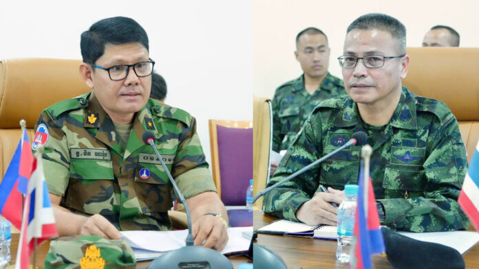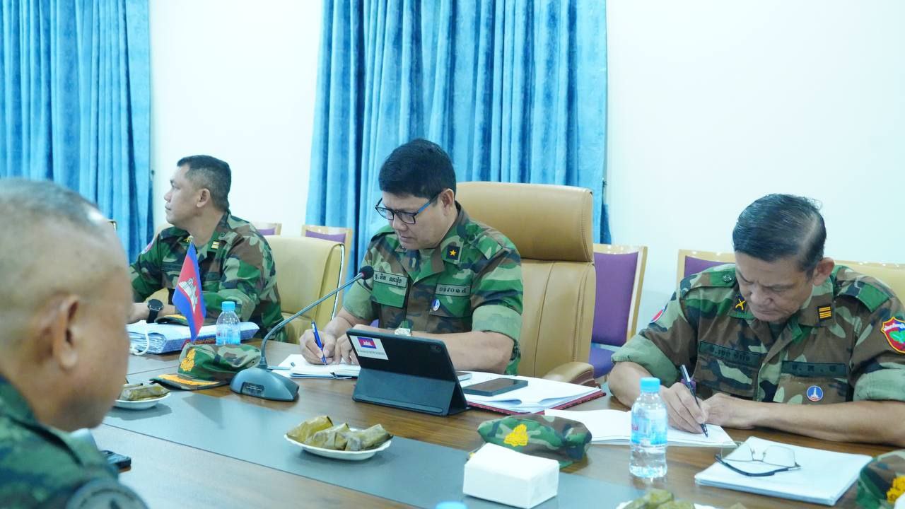 ក្រសួងការពារជាតិ នៃព្រះរាជាណាចក្រកម្ពុជា សូមជម្រាបជូនសាធារណជន អ្នកសារព័ត៌មានជាតិ និងអន្តរជាតិមេត្តាជ្រាបថា៖ តបតាមការអញ្ជើញរបស់ប្រធានក្រុមលេខាធិការដ្ឋាន នៃគណៈកម្មាធិការព្រំដែនថ្នាក់យោធភូមិភាគ កម្ពុជា-ថៃ (RBC) កងទ័ពភូមិភាគទី២ថៃ នៅព្រឹកថ្ងៃទី១៧ ខែតុលា ឆ្នាំ២០២៥នេះ ប្រធានក្រុមលេខាធិការដ្ឋាន នៃគណៈកម្មាធិការព្រំដែនថ្នាក់យោធភូមិភាគ កម្ពុជា-ថៃ (RBC) នៃយោធភូមិភាគទី៤ កម្ពុជា បានជួបពិភាក្សាការងារជាមួយអនុប្រធានក្រុមលេខា នៃគណៈកម្មាធិការព្រំដែនថ្នាក់យោធភូមិភាគ កម្ពុជា-ថៃ (RBC) កងទ័ពភូមិភាគទី២ ថៃ នៅច្រកទ្វារព្រំដែនអន្តរជាតិអូរស្មាច់។ ប្រតិភូកម្ពុជាដឹកនាំដោយ ឧត្តមសេនីយ៍ត្រី និត ណារ៉ុង នាយសេនាធិការរង យោធភូមិភាគទី៤ និងជាប្រធានក្រុមលេខានិងប្រតិភូភាគីថៃដឹកនាំដោយ វរសេនីយ៍ឯក យុត្ថាសាត សេតថាឆៃ នាយរងសេនាធិការ កងទ័ពភូមិភាគទី២ និងជាអនុប្រធានក្រុមលេខាធិការ។