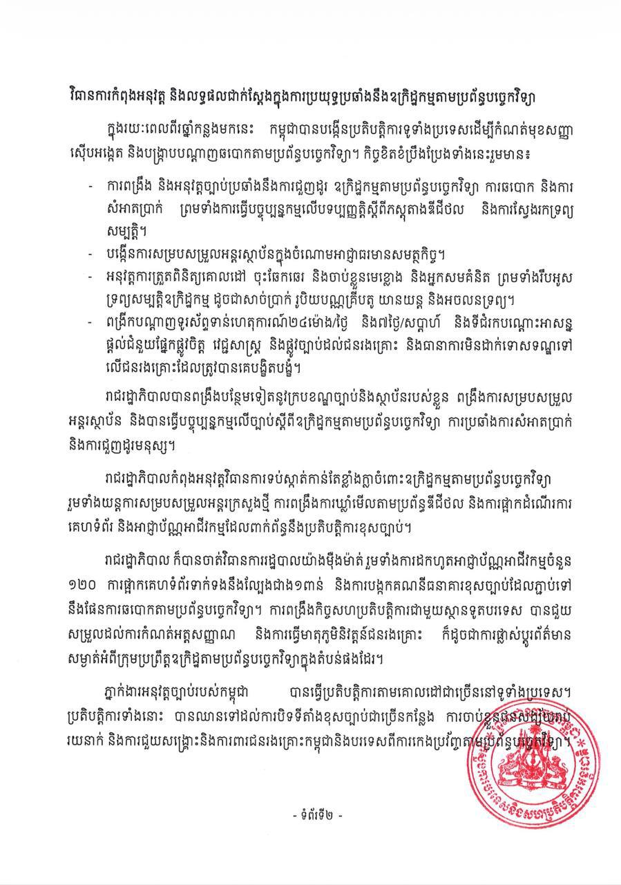 កម្ពុជាបញ្ជាក់ជាថ្មីពីការប្តេជ្ញាចិត្តប្រយុទ្ធប្រឆាំង ឧក្រិដ្ឋកម្មឆ្លងដែនគ្រប់ទម្រង់