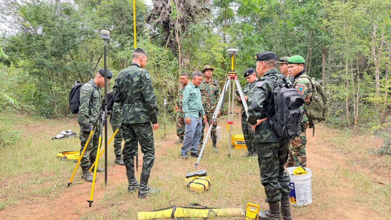 ការចុះវាស់វែង និងបោះបង្គោលបណ្តោះអាសន្ននៅកំណាត់ខ្សែព្រំដែនចន្លោះបង្គោលលេខ៤២ និងលេខ៤៧ ធ្វើឡើងតាមស្មារតីនៃកិច្ចប្រជុំគណៈកម្មការចម្រុះខណ្ឌសីមាព្រំដែន (JBC) កម្ពុជា-ថៃ កាលពីថ្ងៃទី២១-២២ ខែតុលា ឆ្នាំ២០២៥ កន្លងទៅ។