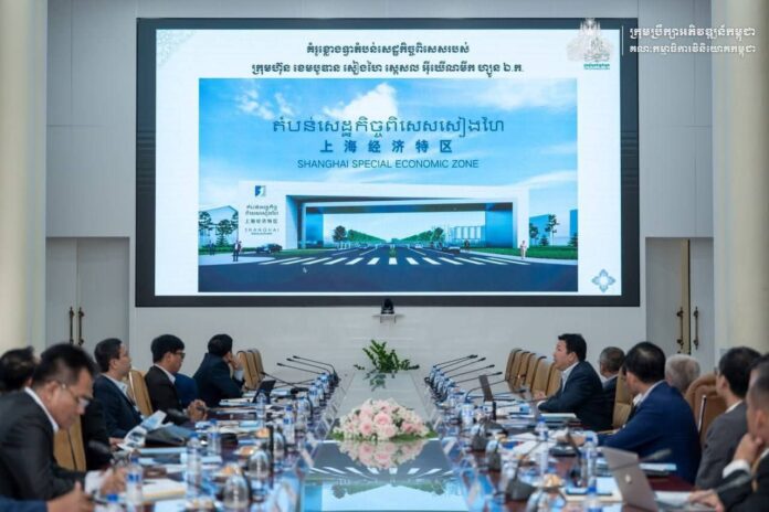 យោងតាមប្រភពដដែលបានឱ្យដឹងបន្ថែមថា ការស្នើសុំបង្កើតតំបន់សេដ្ឋកិច្ចរបស់ក្រុមហ៊ុន Cambodia Shanghai Special Economic Zone Co., Ltd. បានធ្វើឡើងកាលពីថ្ងៃទី៦ ខែមករា ឆ្នាំ២០២៦ ដោយគណៈកម្មាធិការវិនិយោគកម្ពុជានៃក្រុមប្រឹក្សាអភិវឌ្ឍន៍កម្ពុជា បានរៀបចំកិច្ចប្រជុំ “ច្រកចេញ-ចូលតែមួយ” លើកទី១ នៅក្នុងឆ្នាំ២០២៦ ក្រោមអធិបតីភាពឯកឧត្តម ជា វុទ្ធី អគ្គលេខាធិការគណៈកម្មាធិការវិនិយោគកម្ពុជា។