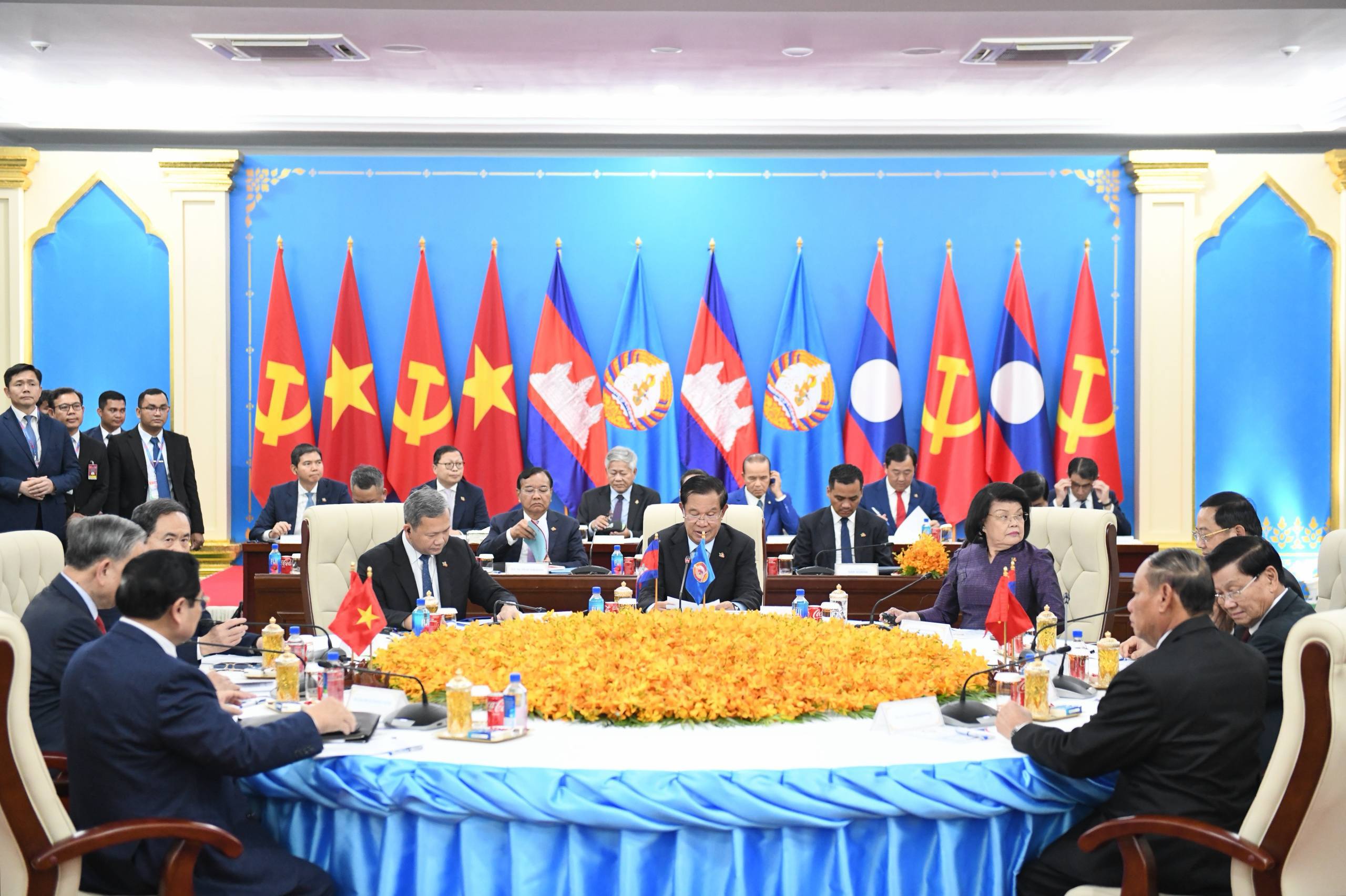 សម្ដេចតេជោ ហ៊ុន សែន អញ្ជើញដឹកនាំកិច្ចប្រជុំកំពូលនៃគណបក្សទាំង៣ កម្ពុជា វៀតណាម និងឡាវ