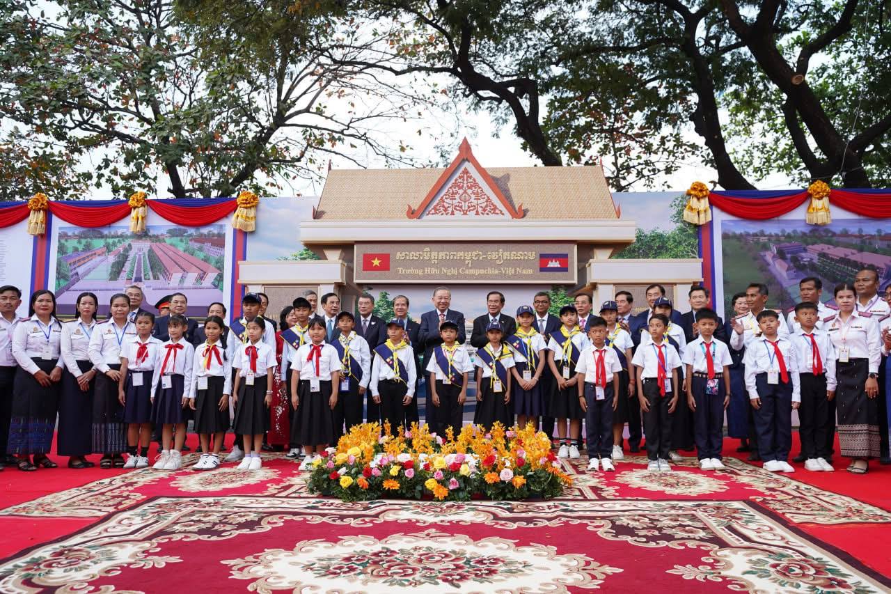 បន្ទាប់មកថ្នាក់ដឹកនាំទាំងពីរ សម្ដេចតេជោ ហ៊ុន សែន និងឯកឧត្តម តូច ឡឹម បានអញ្ជើញជានិមិត្តរូបក្នុងពិធីបញ្ចុះបឋមសិលាសាងសង់សាលាមិត្តភាព កម្ពុជា-វៀតណាម” និងថតរូបអនុស្សាវរីយ៍រួមគ្នាជាមួយគណៈប្រតិភូ ថ្នាក់ដឹកនាំសាលា លោកគ្រូ អ្នកគ្រូ និងសិស្សានុសិស្ស មុននឹងបញ្ចប់កម្មវិធីផងដែរ ៕