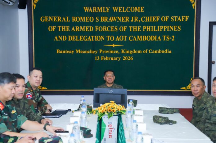 It is noteworthy that His Excellency General ROMEO S BRAWNER JR, Chief of Staff of the Armed Forces of the Philippines, led a delegation to pay an official visit to the Kingdom of Cambodia for 4 days, from February 11 to 14, 2026. During His Excellency General, Chief of Staff of the Armed Forces of the Philippine visit to the Kingdom is aiming to evaluate and review the preparations for reviewing and receiving the role to lead the ASEAN Observer Team (AOT) in 2026, upon the forthcoming handover from Malaysia.