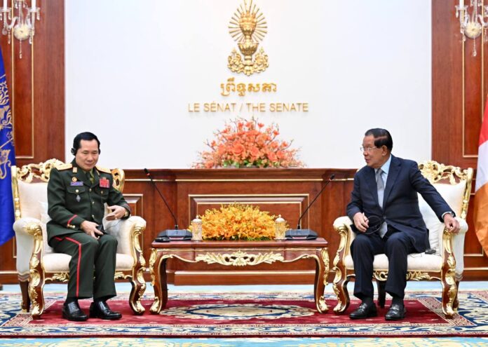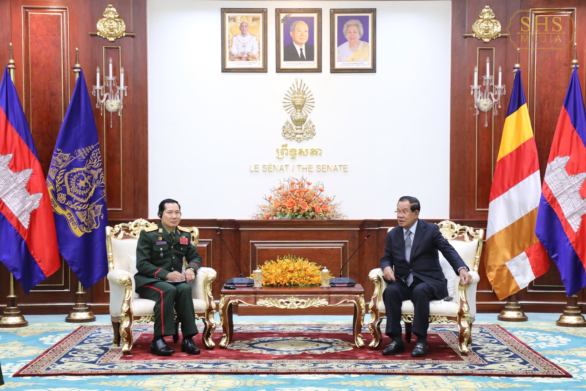 ក្នុងឱកាសជួបពិភាក្សាការងារជាមួយឯកឧត្ដមឧត្ដមសេនីយ៍ឯក សាយចៃ គុមម៉ាស៊ីត អនុរដ្ឋមន្ដ្រីក្រសួងការពារប្រទេសនិងជាប្រធានអគ្គសេនាធិការកងទ័ពប្រជាជនឡាវ នាព្រឹកថ្ងៃទី១៧ ខែកុម្ភៈ ឆ្នាំ២០២៦ នៅវិមានសាមគ្គីភាពនៃព្រឹទ្ធសភា សម្តេចតេជោ ហ៊ុន សែន ប្រធានព្រឹទ្ធសភា នៃព្រះរាជាណាចក្រកម្ពុជាបានបង្ហាញនូវភាពរីករាយចំពោះកិច្ចសហប្រតិបត្តិការដ៏ល្អនៅតាមព្រំដែនរវាងកម្ពុជានិងឡាវដែលមានមកជាមួយគ្នានាពេលកន្លងមក ហើយសម្តេចតេជោសង្ឃឹមនិងជំរុញបន្ថែមឱ្យអាជ្ញាធរក៏ដូចជាកងទ័ពនៃប្រទេសទាំងពីរកម្ពុជា-ឡាវធ្វើការជាមួយគ្នាបន្ថែមទៀតដើម្បីធ្វើយ៉ាងណារក្សានូវសន្តិភាព សន្តិសុខនៅតាមព្រំដែនឱ្យកាន់តែល្អប្រសើរបន្តទៀត។