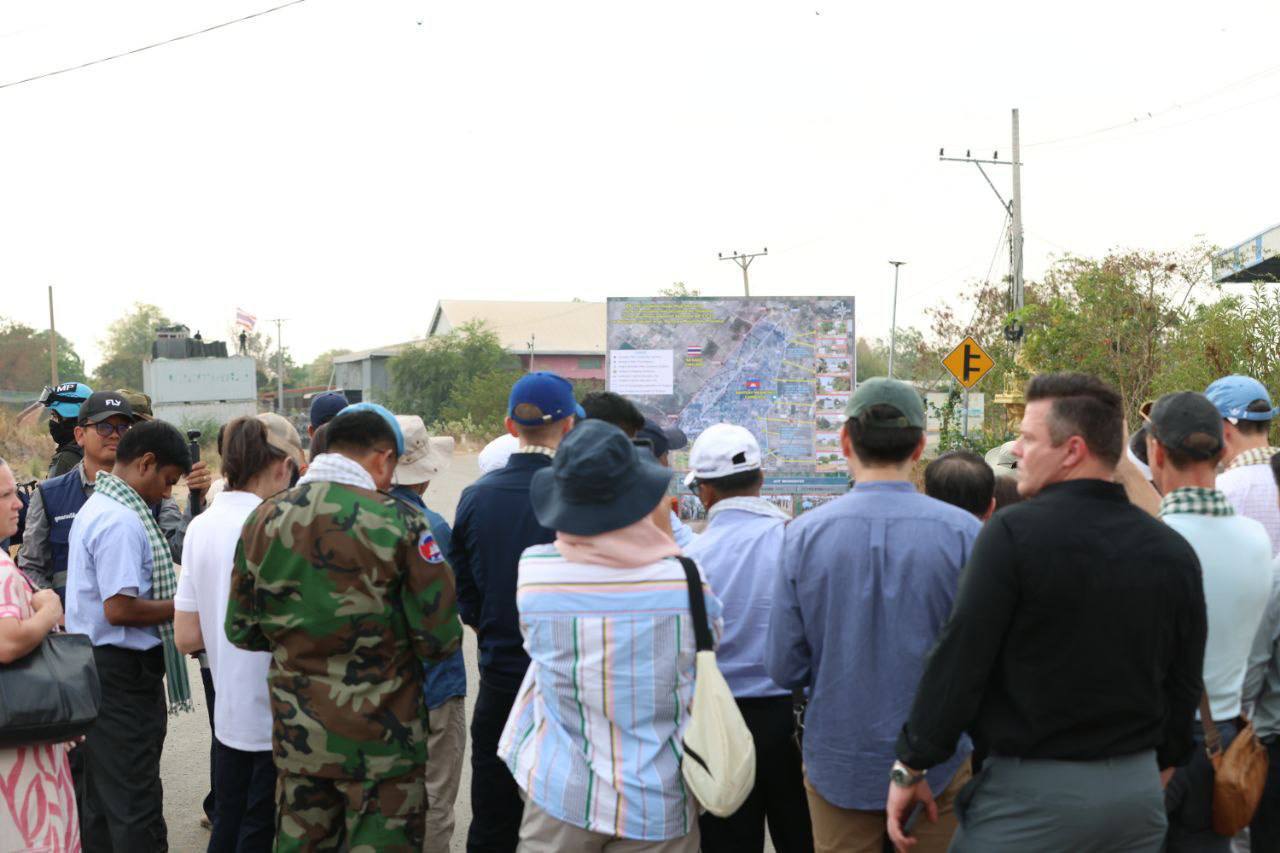 បន្ទាយមានជ័យ ថ្ងៃទី២៣ ខែកុម្ភៈ ឆ្នាំ២០២៦—លោកជំទាវ អ៊ាត សោភា រដ្ឋមន្ត្រីស្តីទី ក្រសួងការបរទេស និងសហប្រតិបត្តិការអន្តរជាតិ អញ្ជើញដឹកនាំបណ្តាអង្គទូត និងទីភ្នាក់ងារបរទេស ប្រចាំនៅព្រះរាជាណាចក្រកម្ពុជា អញ្ជើញទៅពិនិត្យមើលដោយផ្ទាល់ សកម្មភាពរំលោភបំពានរបស់កងកម្លាំងថៃ នៅតំបន់បឹងត្រកួន និងទស្សនកិច្ច និងពិនិត្យមើលស្ថានភាពជនភៀសសឹកនៅមណ្ឌលសុវត្ថិភាពវត្តកណ្តោល ស្ថិតក្នុងស្រុកថ្មពួក ខេត្តបន្ទាយមានជ័យ នារសៀលថ្ងៃទី២៣ ខែកុម្ភៈ ឆ្នាំ២០២៦។