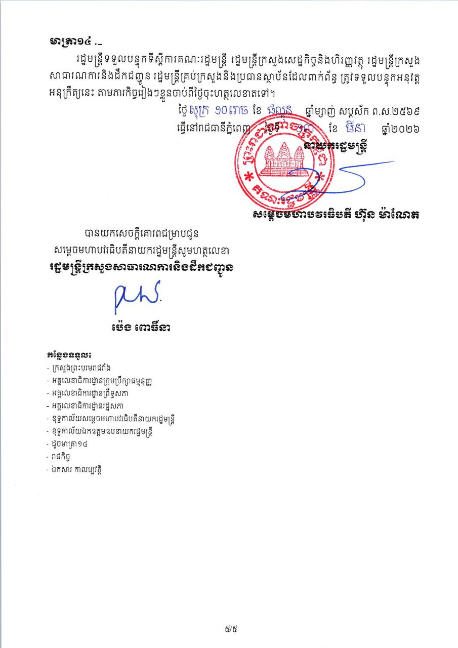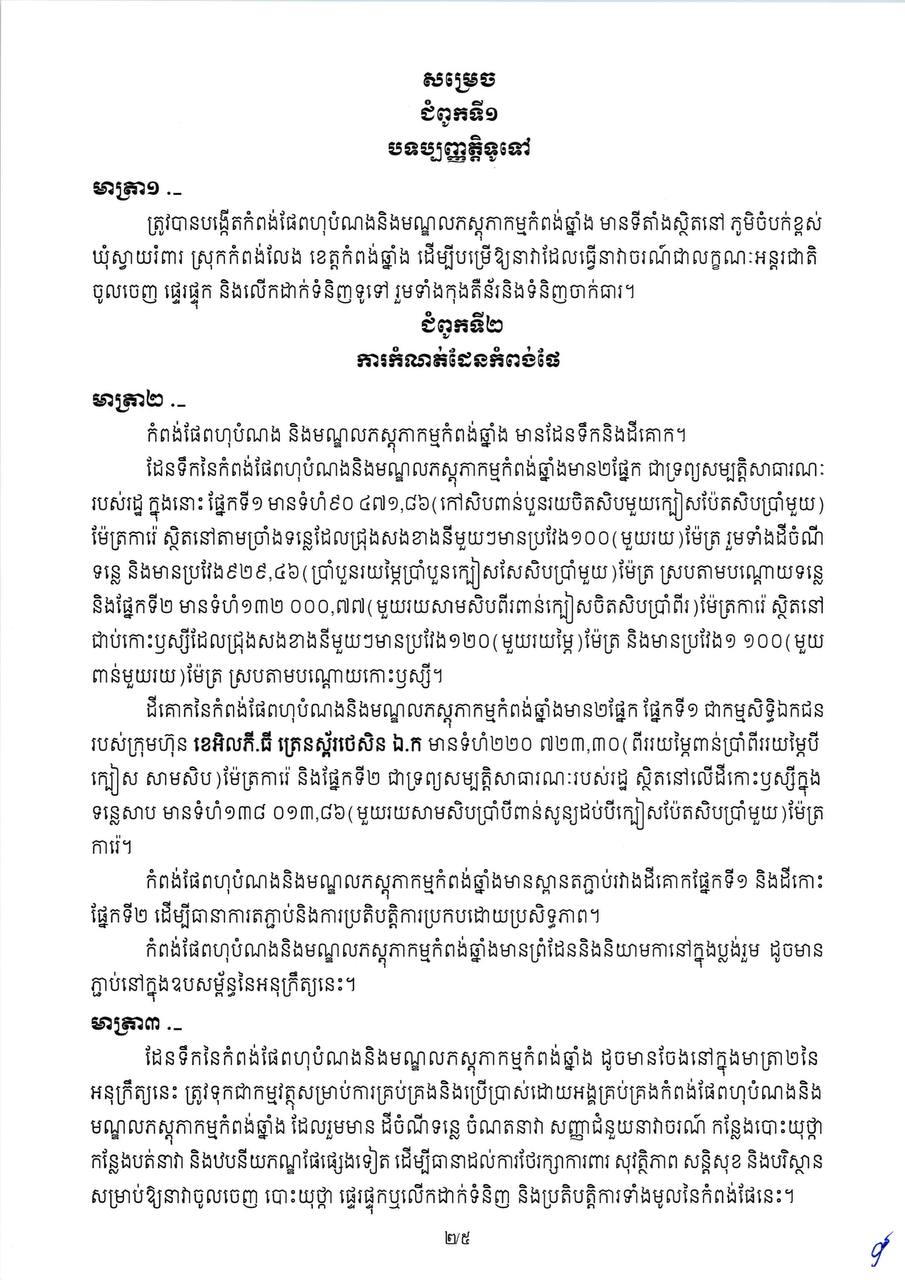 (ភ្នំពេញ)៖ សម្តេចបវរធិបតី ហ៊ុន ម៉ាណែត នាយករដ្ឋមន្ត្រីនៃកម្ពុជា បានចេញអនុក្រឹត្យសម្រេចបង្កើតកំពង់ផែពហុបំណង និងមណ្ឌលភស្តុភាកម្មកំពង់ឆ្នាំង នៅស្រុកកំពង់លែង។