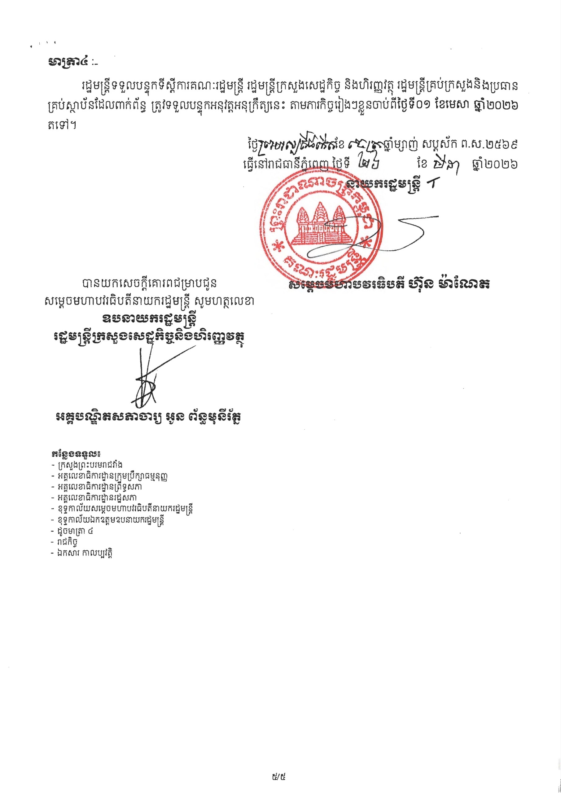 "ក្រសួងការពារជាតិ នៃព្រះរាជាណាចក្រកម្ពុជា សូមជម្រាបជូនសាធារណជន អ្នកសារព័ត៌មានជាតិ និងអន្តរជាតិមេត្តាជ្រាបថា៖ នៅព្រឹកថ្ងៃទី២៣ ខែមេសា ឆ្នាំ២០២៦នេះ