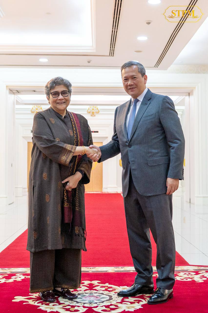 នាព្រឹកថ្ងៃទី១ ខែមេសា ឆ្នាំ២០២៦, សម្ដេចមហាបវរធិបតី ហ៊ុន ម៉ាណែត នាយករដ្ឋមន្ត្រី នៃព្រះរាជាណាចក្រកម្ពុជា បានអនុញ្ញាតឱ្យ លោកជំទាវ Rabab Fatima អគ្គលេខាធិការរង អង្គការសហប្រជាជាតិ និងជាតំណាងជាន់ខ្ពស់សម្រាប់ប្រទេសអភិវឌ្ឍន៍តិចតួច ប្រទេសកំពុងអភិវឌ្ឍន៍ គ្មានព្រំដែនជាប់សមុទ្រ និងប្រទេសដីកោះកំពុងអភិវឌ្ឍន៍តូចៗ ចូលជួបសម្ដែងការគួរសម និងពិភាក្សាការងារ នៅវិមានសន្ដិភាព។