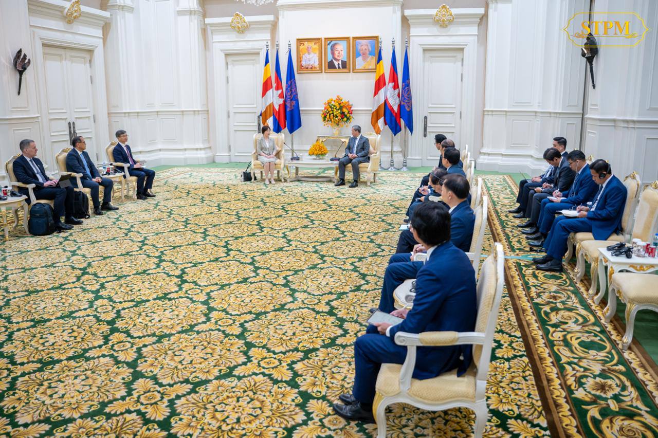 នាព្រឹកថ្ងៃទី១ ខែមេសា ឆ្នាំ២០២៦ នៅវិមានសន្តិភាព សម្ដេចមហាបវរធិបតី ហ៊ុន ម៉ាណែត នាយករដ្ឋមន្ត្រីនៃព្រះរាជាណាចក្រកម្ពុជា បានអនុញ្ញាតឱ្យ លោកជំទាវ Zou Jiayi ប្រធានធនាគារវិនិយោគហេដ្ឋារចនាសម្ព័ន្ធអាស៊ី (AIIB) ចូលជួបសម្តែងការគួរសម និងពិភាក្សាការងារ។