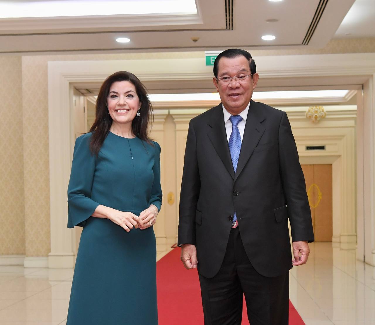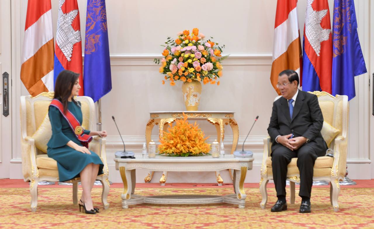 នៅវិមានសន្តិភាព នាព្រឹកថ្ងៃទី២៣ ខែមិថុនា ឆ្នាំ២០២២ នេះ សម្ដេចអគ្គមហាសេនាបតីតេជោ ហ៊ុន សែន នាយករដ្ឋមន្ត្រី នៃព្រះរាជាណាចក្រកម្ពុជា បានទទួលជួបពិភាក្សាការងារជាមួយនឹងលោកជំទាវ អាយដា អ៊ុនលូ (Ayda Unlu) ឯកអគ្គរដ្ឋទូតតួគី ប្រចាំនៅកម្ពុជា ខណៈដែលលោកជំទាវ បានចប់បេសកកម្មការទូតនៅព្រះរាជាណាចក្រកម្ពុជា។