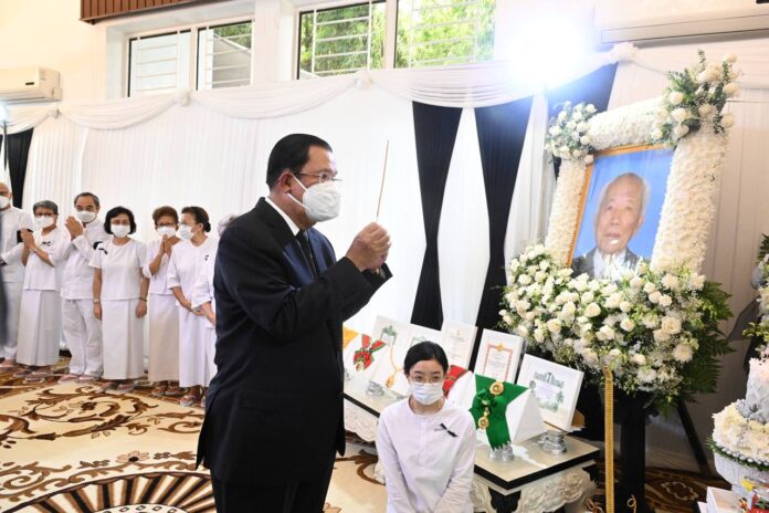 សម្តេចតេជោនាយករដ្ឋមន្រ្តី បានអុជធៀបនៅពីមុខមជ្ឈូសតម្កល់សព និងបានលំឱនកាយវាចាចិត្តគោរពចំពោះវិញ្ញាណក្ខសព ឯកឧត្តម អ៊ឹង គៀត ដែលបាមនទទួលមរណភាពលាចាកលោកយើងនេះទៅកាន់លោកខាងមុខ ក្នុងជន្មាយុ៩៨ឆ្នាំ ដោយជរាពាធ។ សូមបញ្ជាក់ថា ភ្លាមៗបន្ទាប់ពីទទួលបាននូវដំណឹងដ៏ក្រៀមក្រំបំផុតនោះ សម្តេចតេជោនាយករដ្ឋមន្រ្តី ក្នុងនាមក្រុមគ្រួសារ បានផ្ញើនូវសាររំលែកទុក្ខរំលែកទុក្ខដ៏ក្រៀមក្រំបំផុត ជូនក្រុមគ្រួសារនៃសព ឯកឧត្តម អ៊ឹង គៀត។