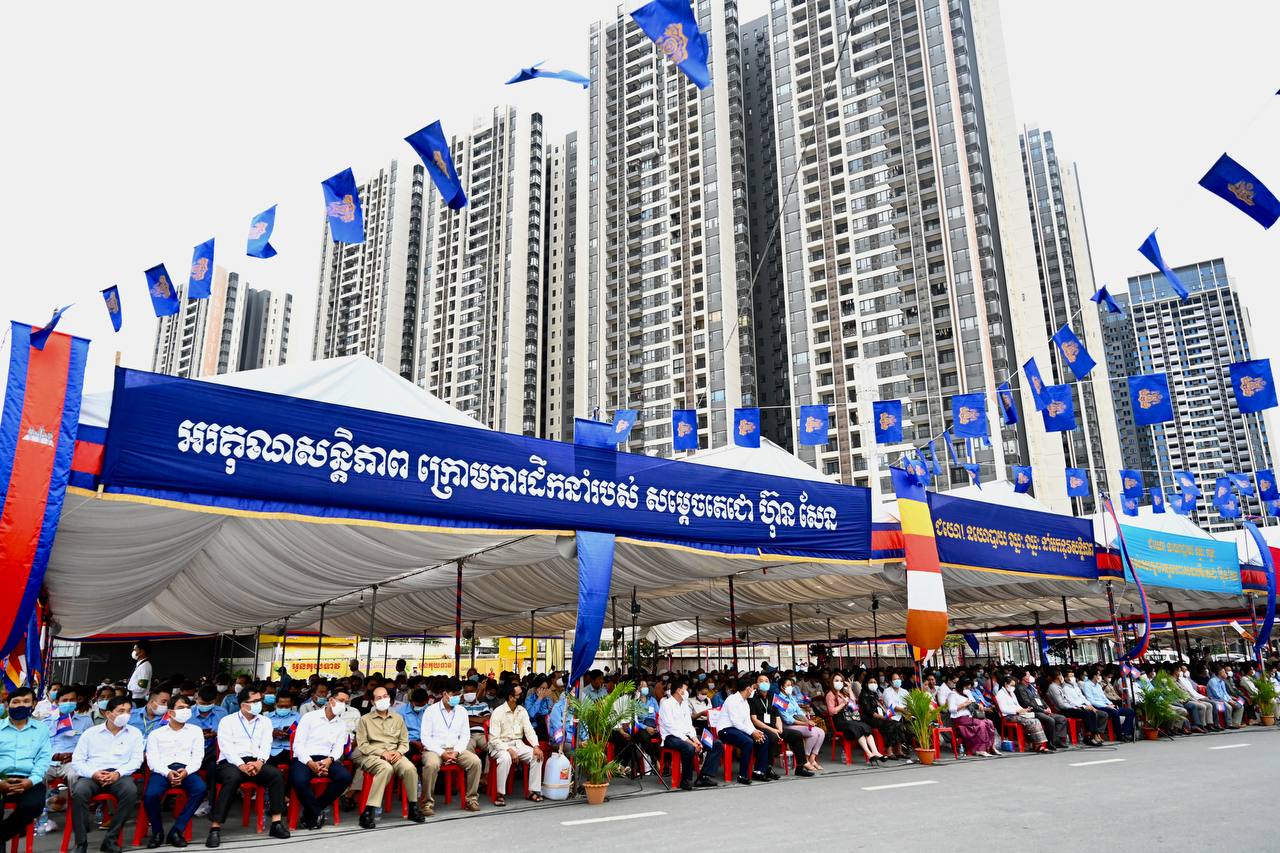 សម្តេចតេជោនាយករដ្ឋមន្ត្រី បានអបអរសាទរចំពោះសមិទ្ធផលស្ពានអាកាសចំនួនពីរបន្ថែមទៀតនៅថ្ងៃនេះ និងចុងបញ្ចប់សម្តេចតេជោក៏បានអញ្ជើញចុចប៊ូតុងបើកការដ្ឋានការសាងសង់ស្ពានអាកាសចំនួនពីរចាប់ពីពេលនេះតទៅ៕