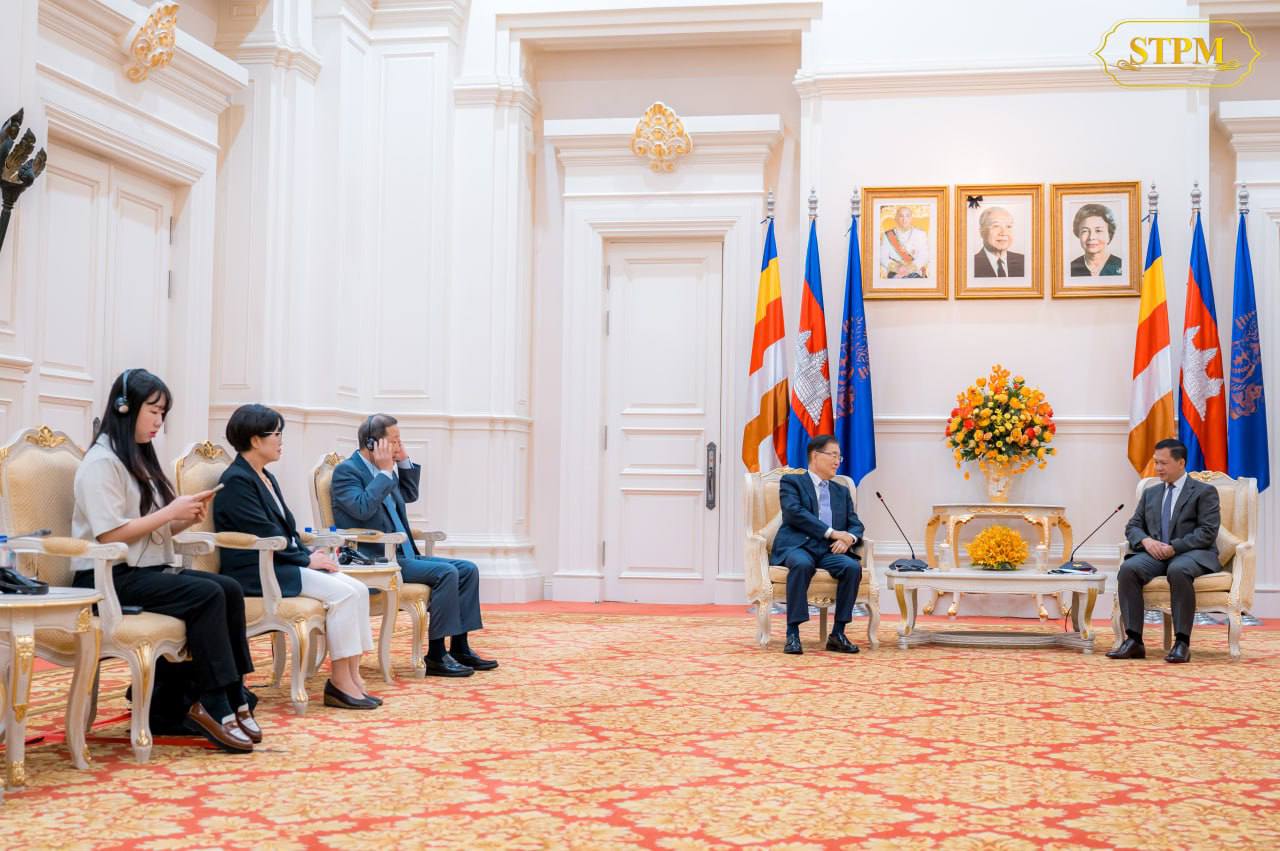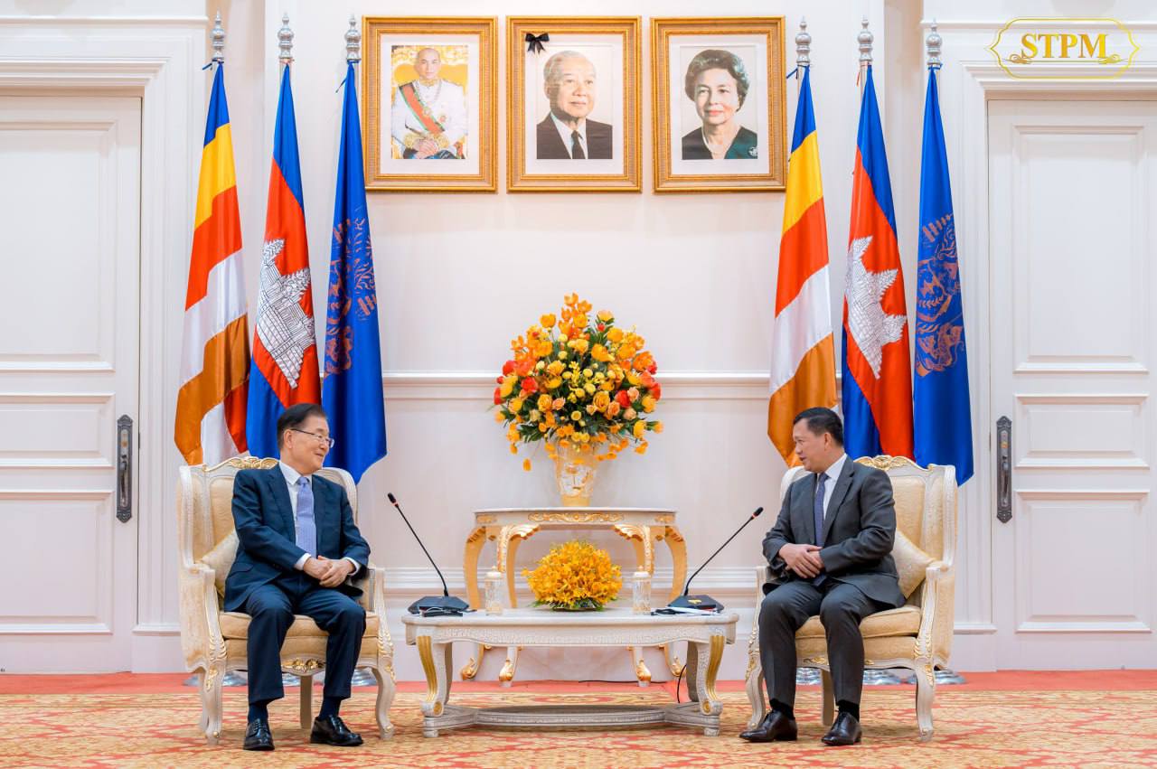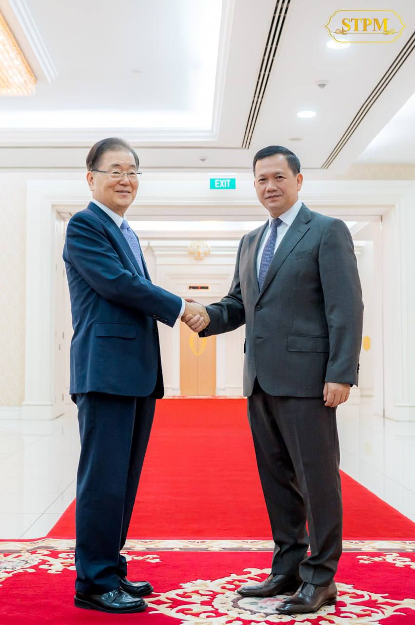 នាព្រឹកថ្ងៃទី១៤ ខែធ្នូ ឆ្នាំ២០២៣ សម្តេចមហាបវរធិបតី ហ៊ុន ម៉ាណែត នាយករដ្ឋមន្រ្តី នៃព្រះរាជាណាចក្រកម្ពុជា បានអនុញ្ញាតឱ្យ ឯកឧត្តម ជុង អ៉ីយ៉ុង (CHUNG Eui-yong) ប្រធានគណៈកម្មាធិការអចិន្ត្រៃយ៍ នៃសន្និសីទអន្តរជាតិនៃបណ្តាគណបក្សនយោបាយនៅអាស៊ី (ICAPP) និងជាអតីតរដ្ឋមន្ត្រីការបរទេស នៃសាធារណរដ្ឋកូរ៉េ ព្រមទាំងគណៈប្រតិភូ ចូលជួបសម្តែងការគួរសម និងពិភាក្សាការងារ នៅវិមានសន្តិភាព ។