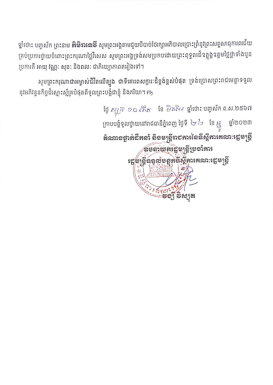 សម្ដេចមហាបវរធិបតី ហ៊ុន ម៉ាណែត នាយករដ្ឋមន្ត្រីនៃព្រះរាជាណាចក្រកម្ពុជា បានអនុញ្ញាតឱ្យ លោក Song Hailiang ប្រធានក្រុមហ៊ុន China Communication Construction Company (CCCC)