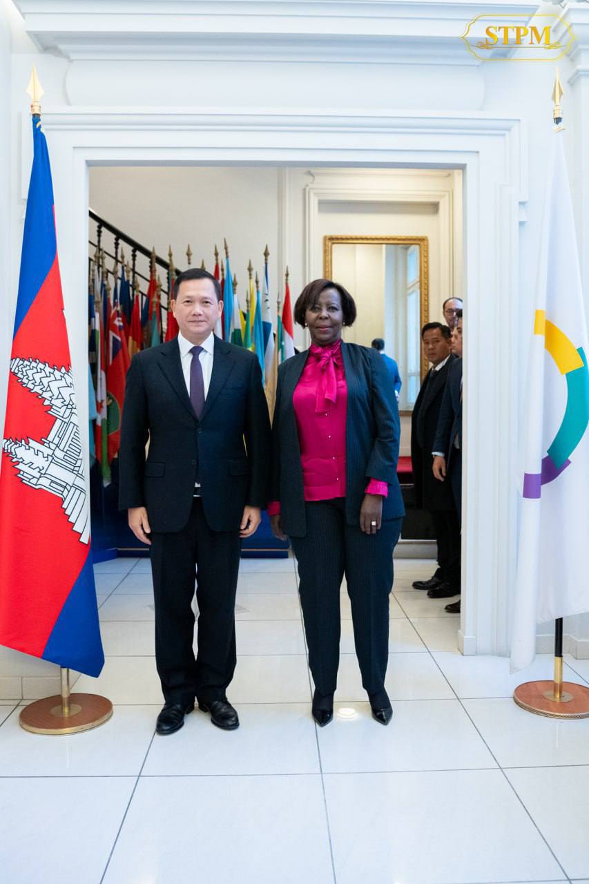 (ទីក្រុងប៉ារីស)៖ នាព្រឹកថ្ងៃទី១៥ ខែមករា ឆ្នាំ២០២៤ សម្តេចមហាបវរធិបតី ហ៊ុន ម៉ាណែត នាយករដ្ឋមន្រ្តី នៃព្រះរាជាណាចក្រកម្ពុជា បានអនុញ្ញាតឱ្យលោកជំទាវ ល្វីស មូស៊ីគីវ៉ាបូ (Louise MUSHIKIWABO) អគ្គលេខាធិការអង្គការអន្តរជាតិហ្វ្រង់កូហ្វូនី ចូលជួបសម្តែងការគួរសម ក្នុងឱកាសនៃដំណើរទស្សនកិច្ចផ្លូវការ ចាប់ពីថ្ងៃទី១៣-១៩ ខែមករា ឆ្នាំ២០២៤ នៅទីក្រុងប៉ារីស ប្រទេសបារាំង។