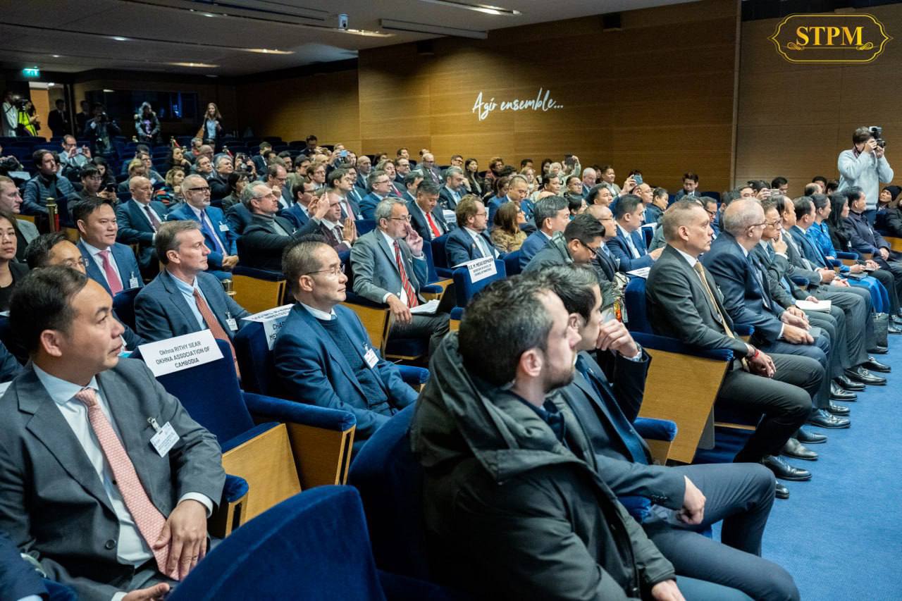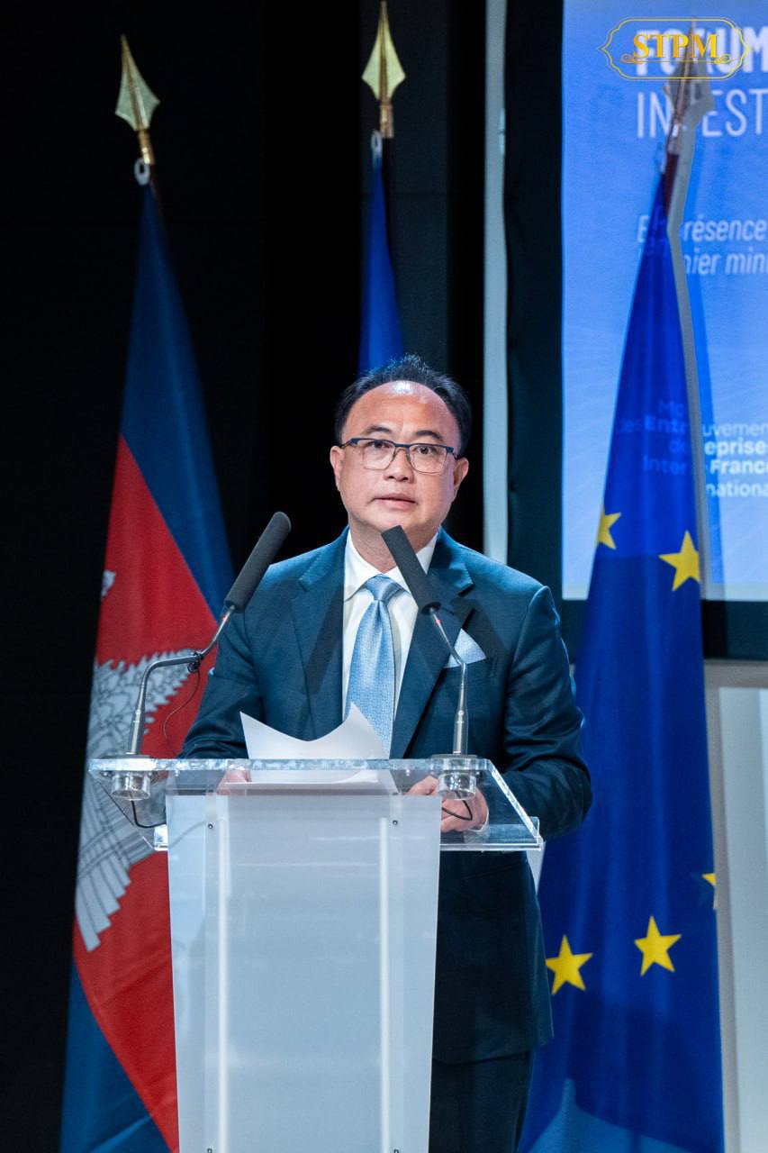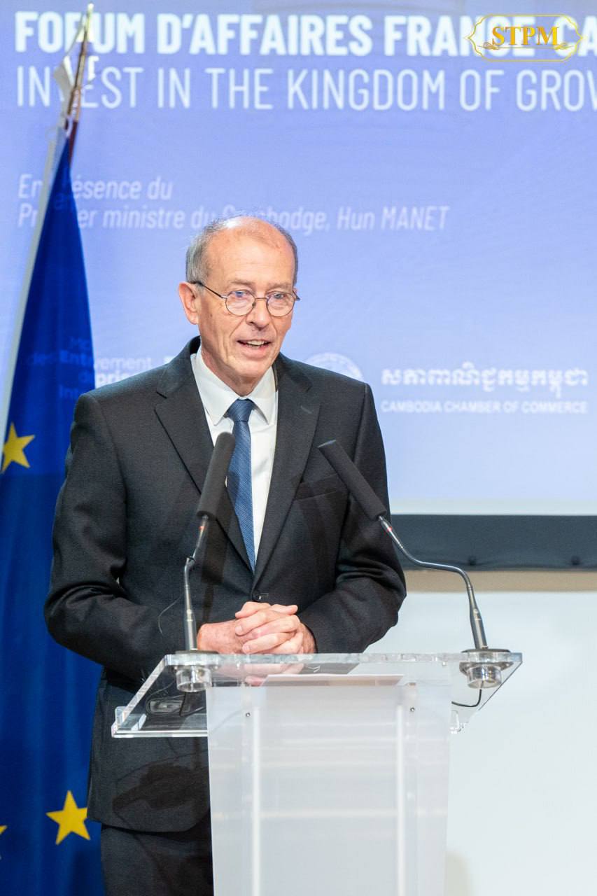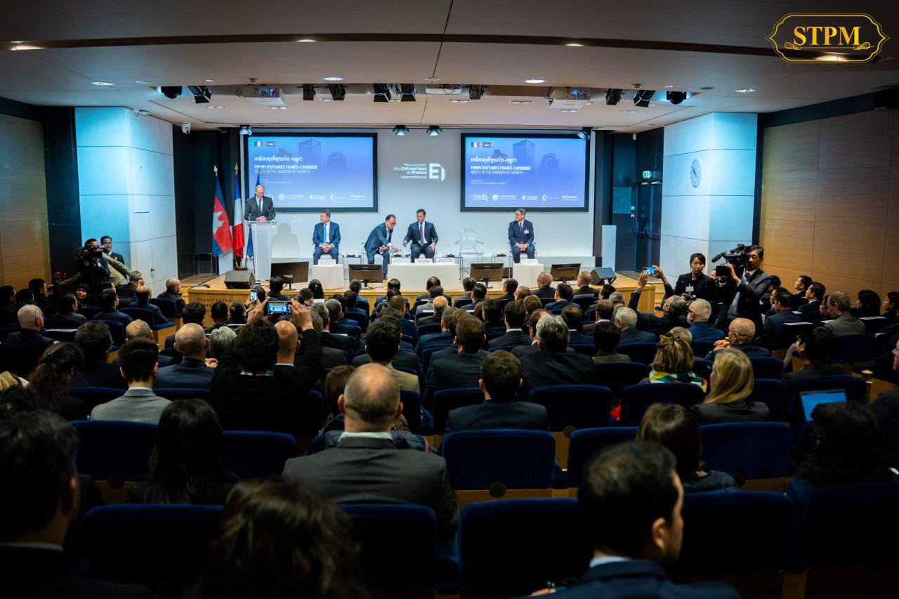 មានប្រសាសន៍នាឱកាសនោះ សម្តេចធិបតីបានលើកទ្បើងថា ទោះបីជាមានភូមិសាស្ត្រឆ្ងាយពីគ្នា ប៉ុន្តែកម្ពុជា-បារាំង មានប្រវត្តិសាស្ត្រផ្សារភ្ជាប់គ្នាតាំងពីយូរអង្វែងមក លើទិដ្ឋភាពជាច្រើន រាប់ទាំងស្ថាបត្យកម្ម, វប្បធម៌, អាហារ, ភាសា, ប្រព័ន្ធរដ្ឋបាល និងច្បាប់របស់បារាំង នៅក្នុងសង្គមកម្ពុជា ។ លើសពីនេះ កម្ពុជា-បារាំង បាននិងកំពុងធ្វើដំណើរនៅលើគន្លងសហប្រតិបត្តិការជិតស្និទ្ធបន្ថែមទៀត ជាអាទិ៍ ហិរញ្ញប្បទានដែលអាចឆ្លើយតបទៅនឹងសក្តានុពលរបស់កម្ពុជា, ការគោរពគោលការណ៍ចីរភាពដែលជួយជំរុញកំណើនប្រកបដោយ បរិយាប័ន្ន, និងគុណតម្លៃរួមដែលជួយត្រួសត្រាយផ្លូវសម្រាប់អនាគតកាន់តែត្រចះត្រចង់ ជាដើម ។ ជាងនេះទៅទៀត ធុរកិច្ចបារាំងមានសក្តានុពលខ្ពស់ក្នុងការចាប់ផ្តើម និងពង្រីកប្រតិបត្តិការនៅកម្ពុជាក្នុងវិស័យដែលមានស្រាប់ និងវិស័យដែលអាចទាក់ទាញនវានុវត្តន៍ និងការវិនិយោគ ដូចជា វិស័យកសិកម្ម, កែច្នៃម្ហូបអាហារ, អគ្គិសនី និងអេឡិចត្រូនិច, ថាមពលកកើតឡើងវិញ, ការថែទាំសុខភាព, អប់រំ និងបច្ចេកវិទ្យាព័ត៌មាន ក៏ដូចជា វិស័យត្រួសត្រាយផ្លូវ ដែលអាចផ្តល់ផលប្រយោជន៍ដល់អ្នកចាប់ផ្តើមមុនគេ (first-mover advantage) ដូចជាវិស័យយានយន្ត, នវានុវត្តន៍ និងបរិវត្តកម្មឌីជីថល, បច្ចេកវិទ្យាបៃតង និងការអភិវឌ្ឍប្រកបដោយចីរភាព, ការថែទាំសុខភាព និងការស្រាវជ្រាវផ្នែកវេជ្ជសាស្ត្រ, និងឧស្សាហកម្មវប្បធម៌ និងច្នៃប្រឌិត ។ល។