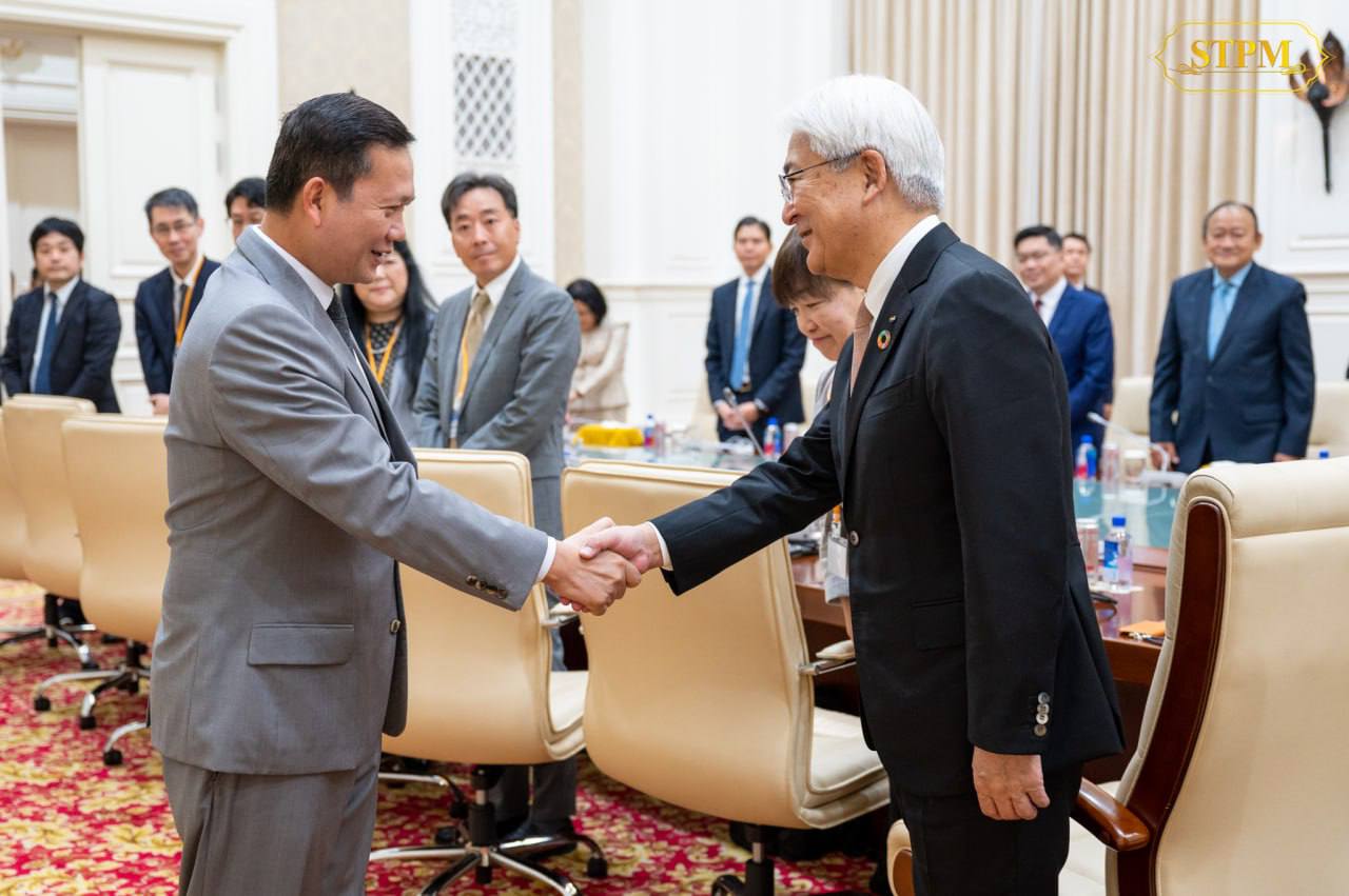 នាព្រឹកថ្ងៃទី០១ ខែកុម្ភៈ ឆ្នាំ២០២៤ សម្តេចមហាបវរធិបតី ហ៊ុន ម៉ាណែត នាយករដ្ឋមន្រ្តី នៃព្រះរាជាណាចក្រកម្ពុជា បានអនុញ្ញាតឱ្យ លោក Yoshihisa Suzuki ប្រធានគណៈកម្មាធិការកិច្ចសហប្រតិបត្តិការធុរកិច្ចមេគង្គ-ជប៉ុន នៃសភាពាណិជ្ជកម្ម និងឧស្សាហកម្មជប៉ុន ចូលជួបសម្តែងការគួរសម និងពិភាក្សាការងារ នៅវិមានសន្តិភាព។